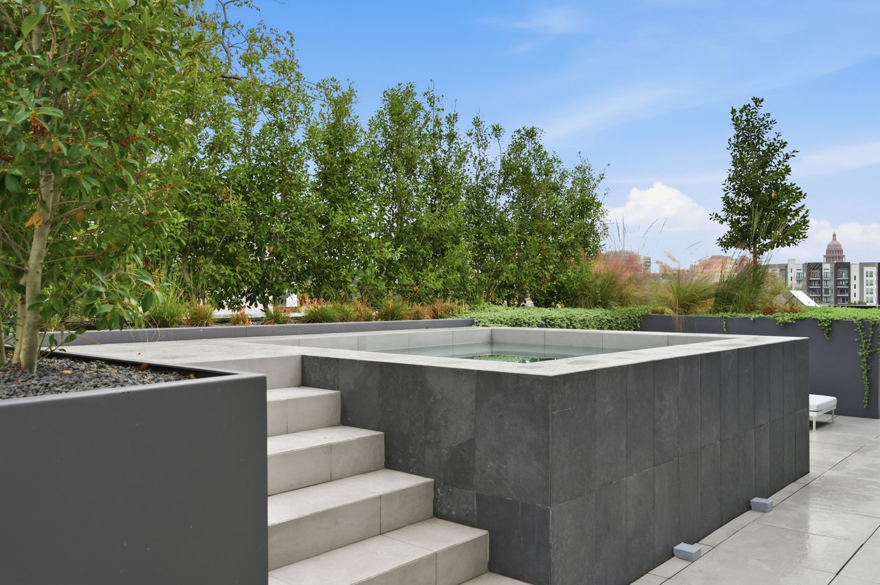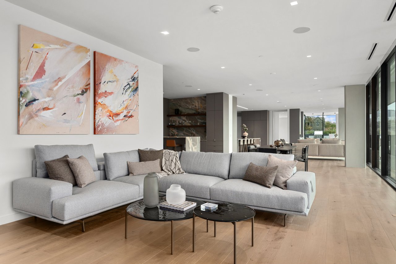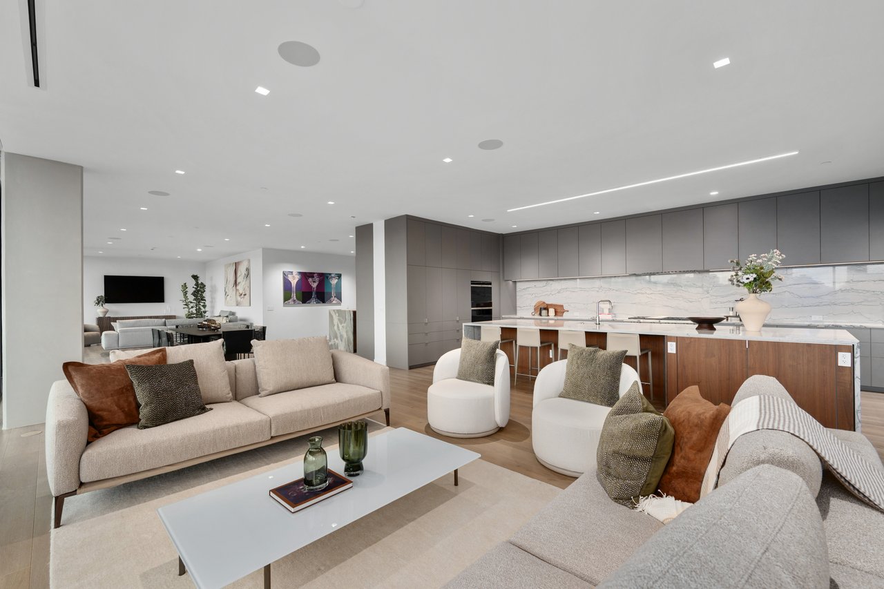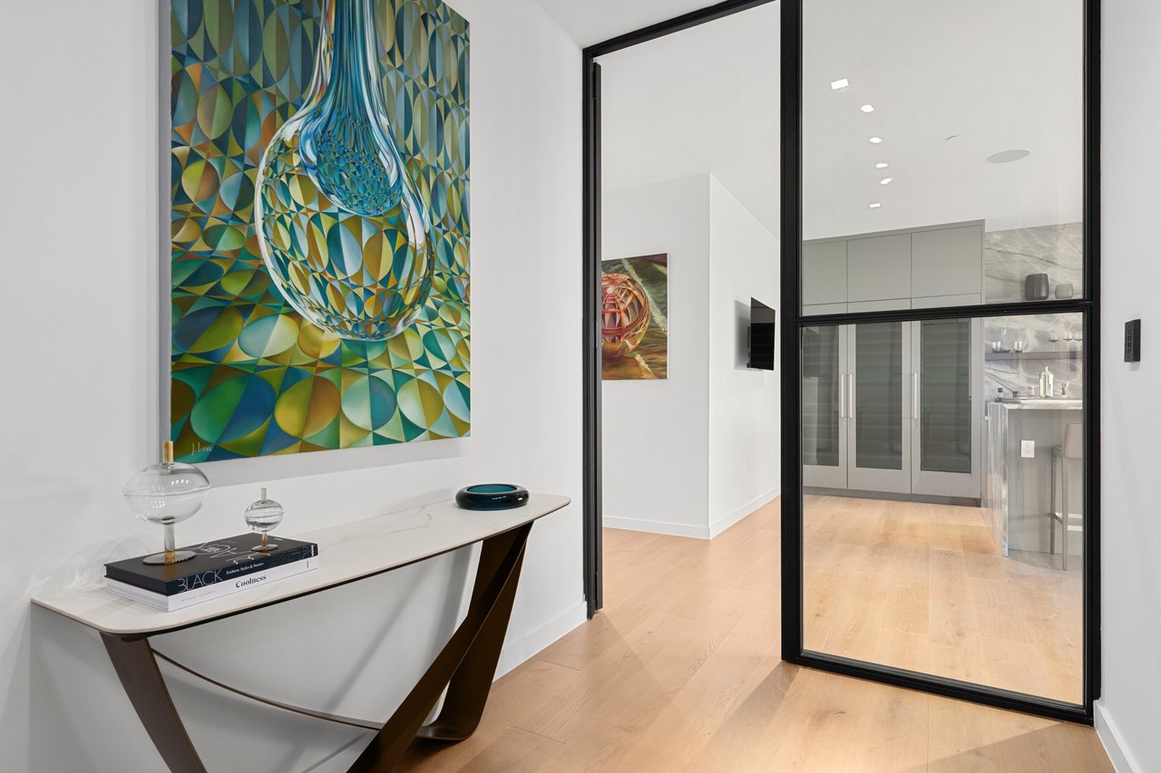 Throughout you will find the most exquisite materials and craftsmanship. Wide-plank oak floors ground the space with an organic warmth, while Maldive quartzite surfaces glow against sleek cabinetry by local cabinetmakers Lavish Kitchen and Bath. Luxury plumbing and lighting fixtures add glittering finishing touches. Additional amenities include a private plunge pool on the terrace, a built-in coffee station, abundant storage and three reserved parking spaces.