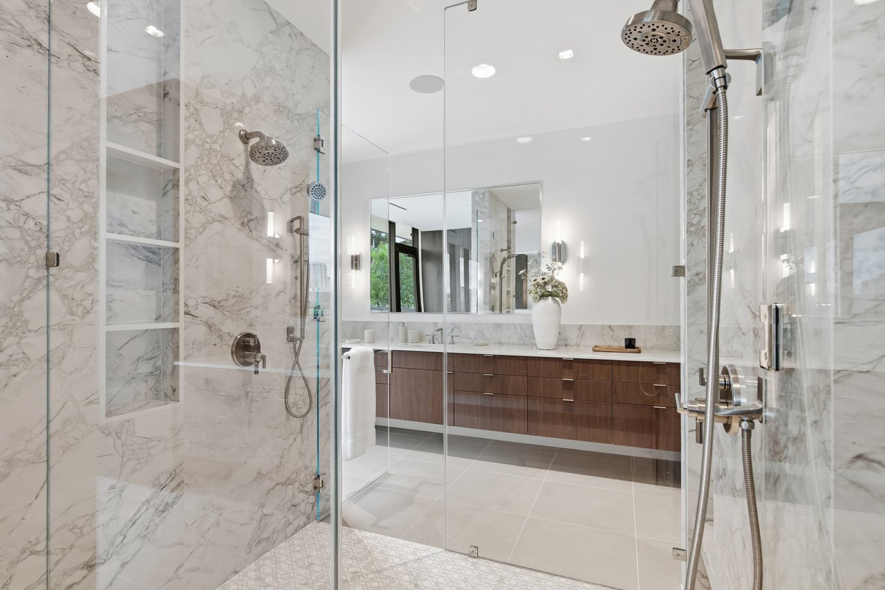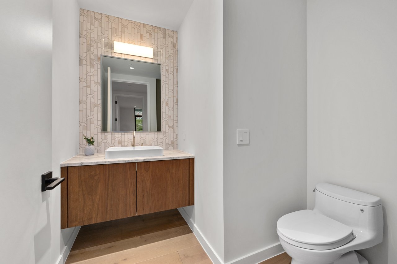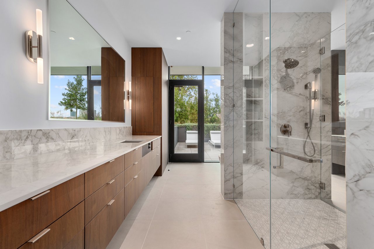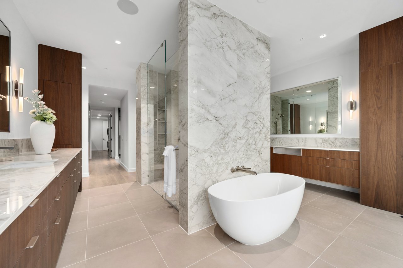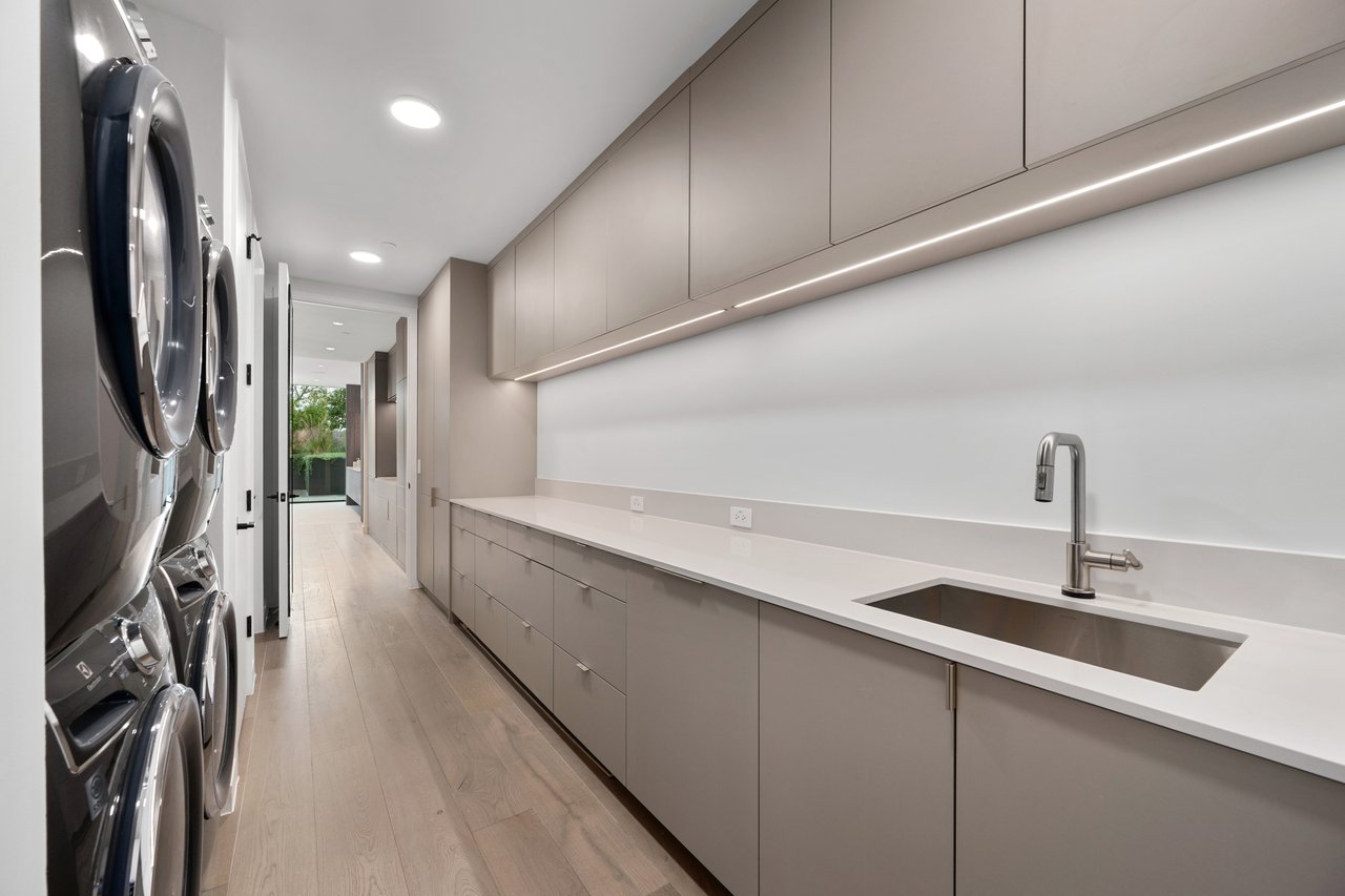 Throughout you will find the most exquisite materials and craftsmanship. Wide-plank oak floors ground the space with an organic warmth, while Maldive quartzite surfaces glow against sleek cabinetry by local cabinetmakers Lavish Kitchen and Bath. Luxury plumbing and lighting fixtures add glittering finishing touches. Additional amenities include a private plunge pool on the terrace, a built-in coffee station, abundant storage and three reserved parking spaces.