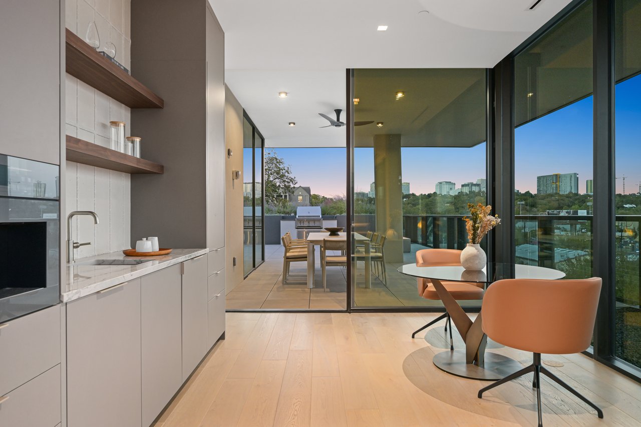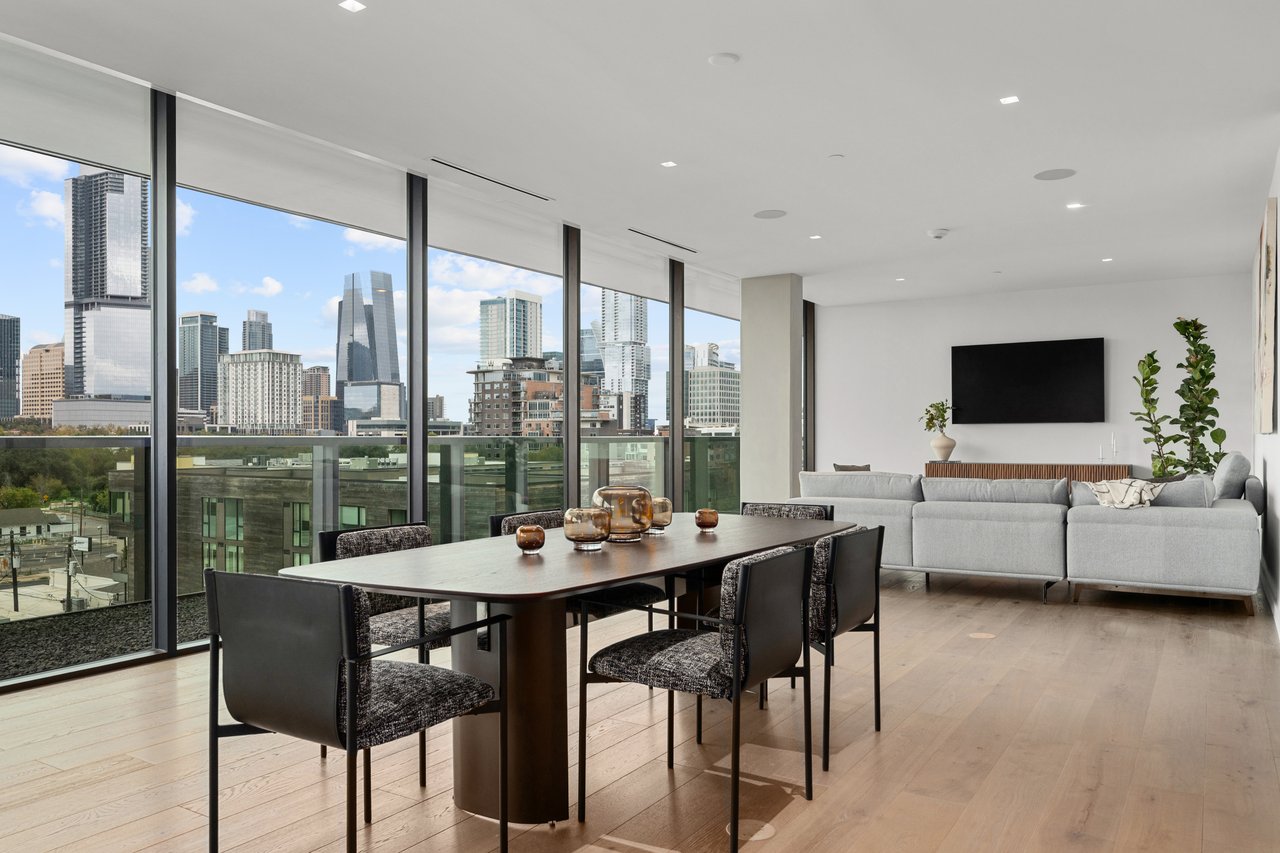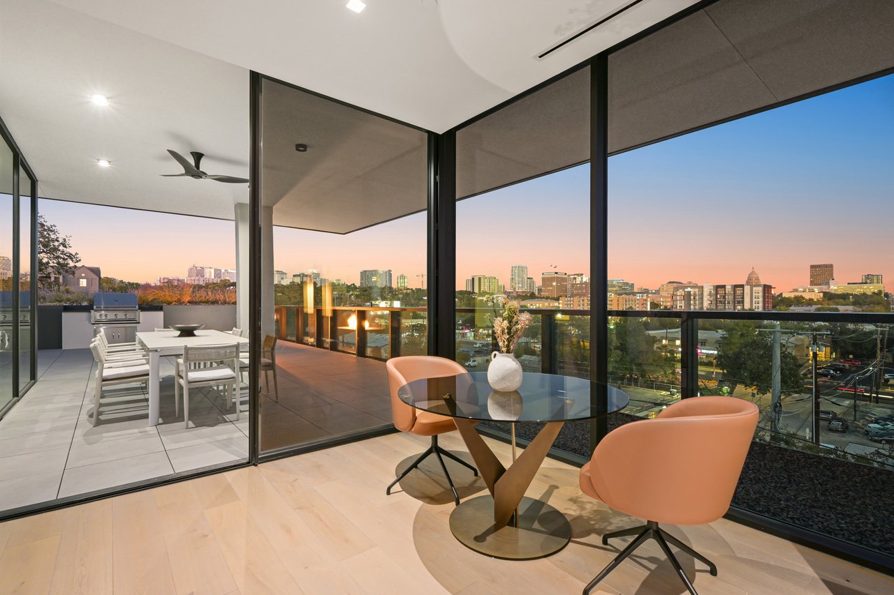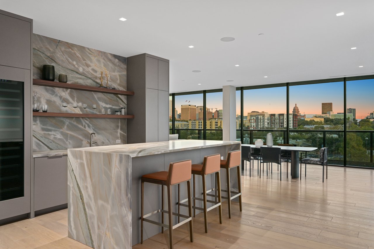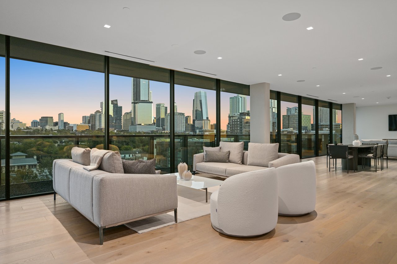 This penthouse is designed to celebrate the new Austin lifestyle, combining a love for local art and a passion for the outdoors with elevated expectations of luxury. Host extraordinary gatherings starting with the hotel-worthy bar at the entry. Serve a signature cocktail then usher guests to the main living areas where they will marvel at the city skyline through floor-to-ceiling windows that stretch across the entire east side. Entertaining space is extended outdoors with a covered terrace opening to a vast patio that encompasses the north side of the building. The primary suite overlooks the outdoor living area and features a sumptuous bath and two oversized walk-in closets. Three additional en-suite bedrooms offer plenty of space for friends and family.