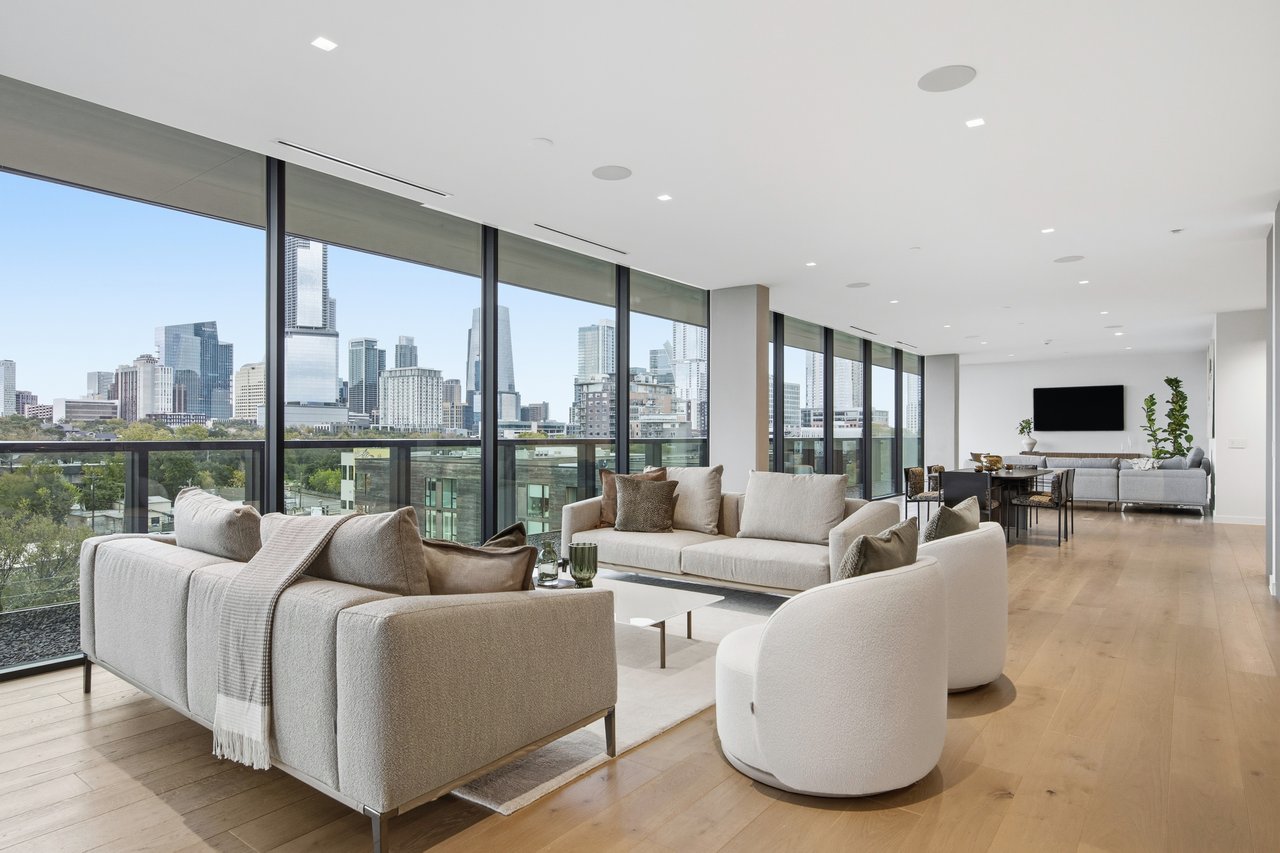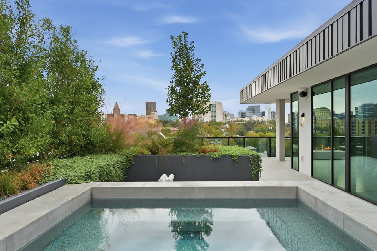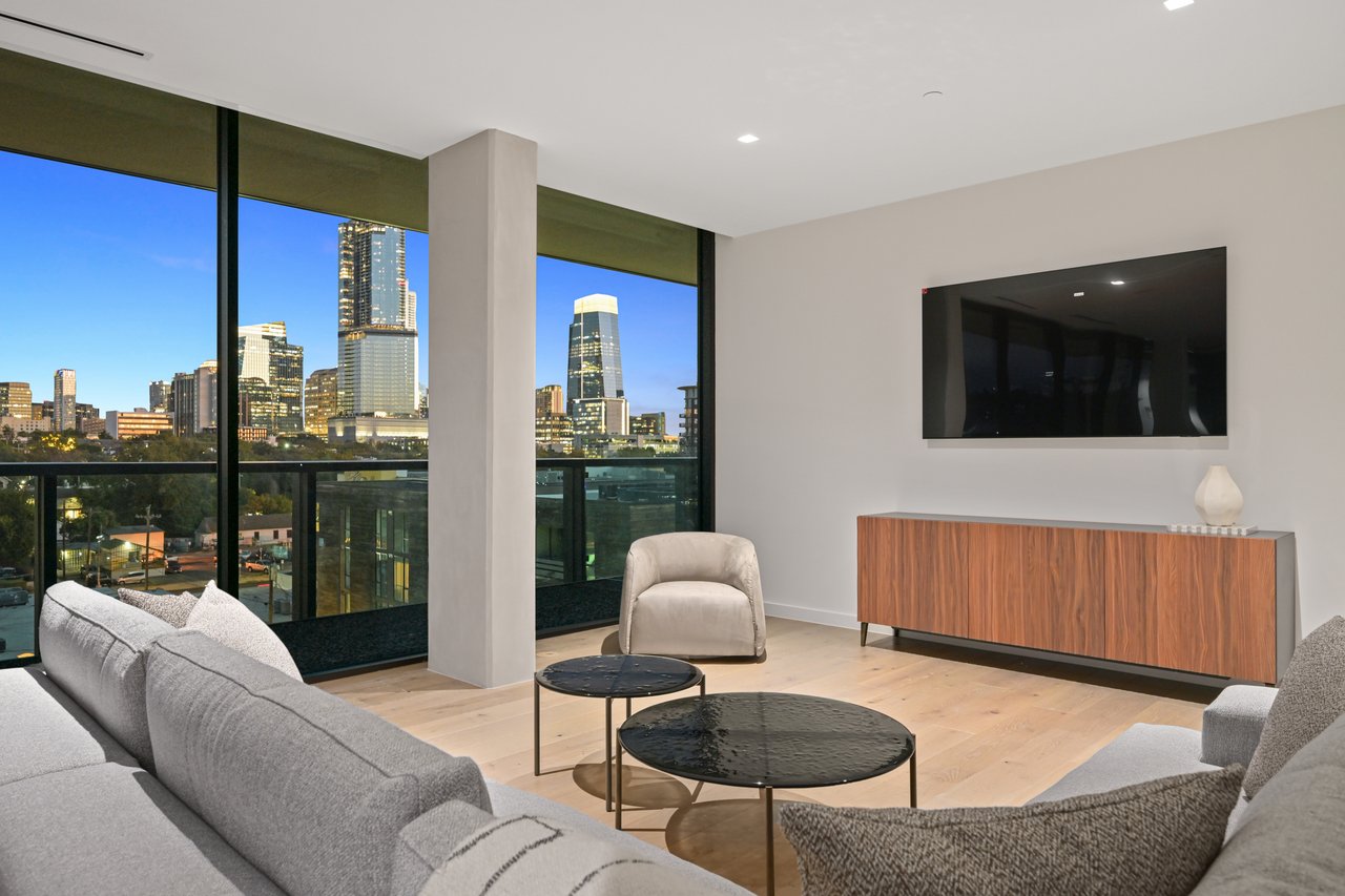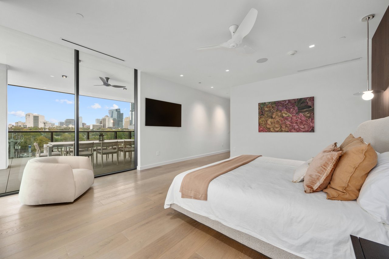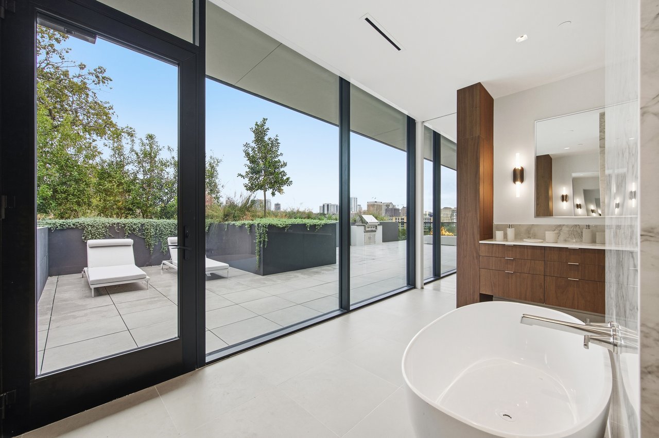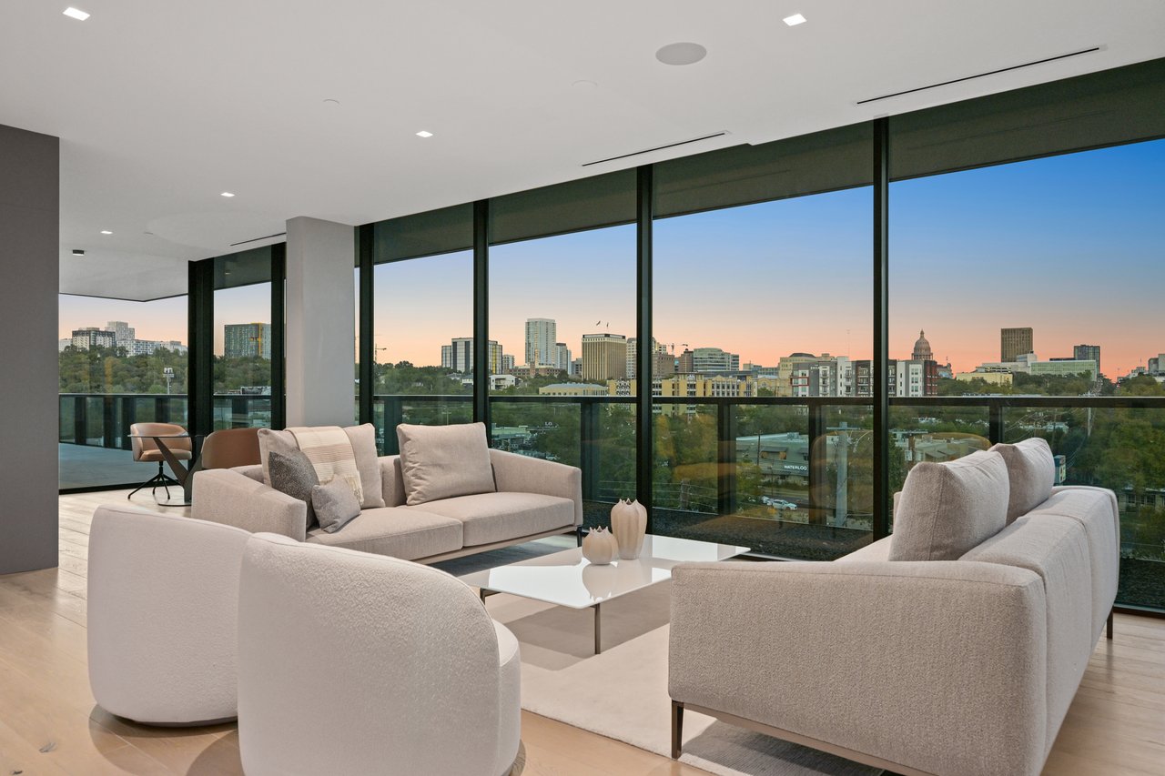 This penthouse is designed to celebrate the new Austin lifestyle, combining a love for local art and a passion for the outdoors with elevated expectations of luxury. Host extraordinary gatherings starting with the hotel-worthy bar at the entry. Serve a signature cocktail then usher guests to the main living areas where they will marvel at the city skyline through floor-to-ceiling windows that stretch across the entire east side. Entertaining space is extended outdoors with a covered terrace opening to a vast patio that encompasses the north side of the building. The primary suite overlooks the outdoor living area and features a sumptuous bath and two oversized walk-in closets. Three additional en-suite bedrooms offer plenty of space for friends and family.