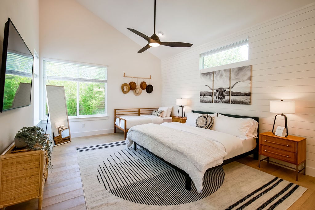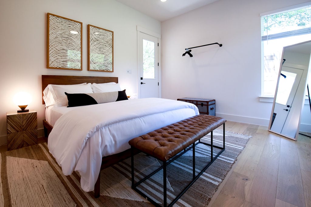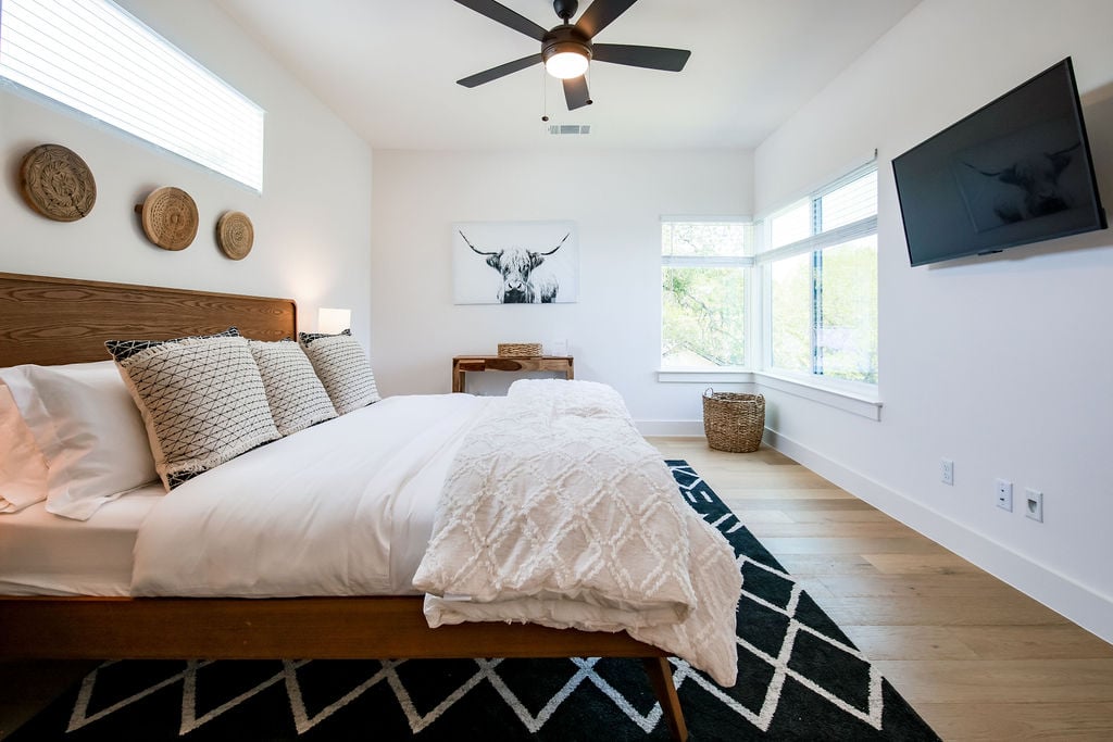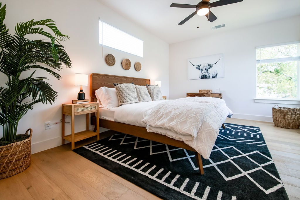 From the striking modern exterior to the warm transitional interiors, this exceptional 2021-built home was designed for functional modern living. Set on an oversized cul-de-sac lot in sought-after Eanes ISD, the 4-bedroom, 3-bath floor plan offers 3 separate living areas, an additional dedicated study/5th bedroom/flex room, an oversized 2-car garage, soaring ceilings, and incredible natural light throughout. Gleaming oak hardwoods run throughout, creating a bright and welcoming backdrop for everyday life.