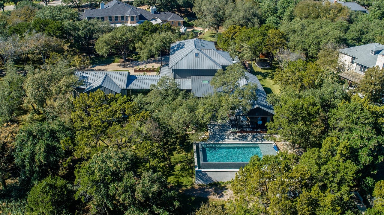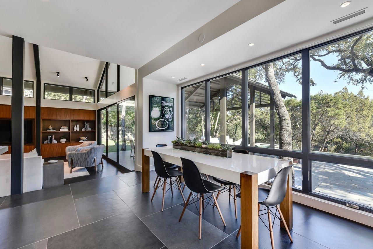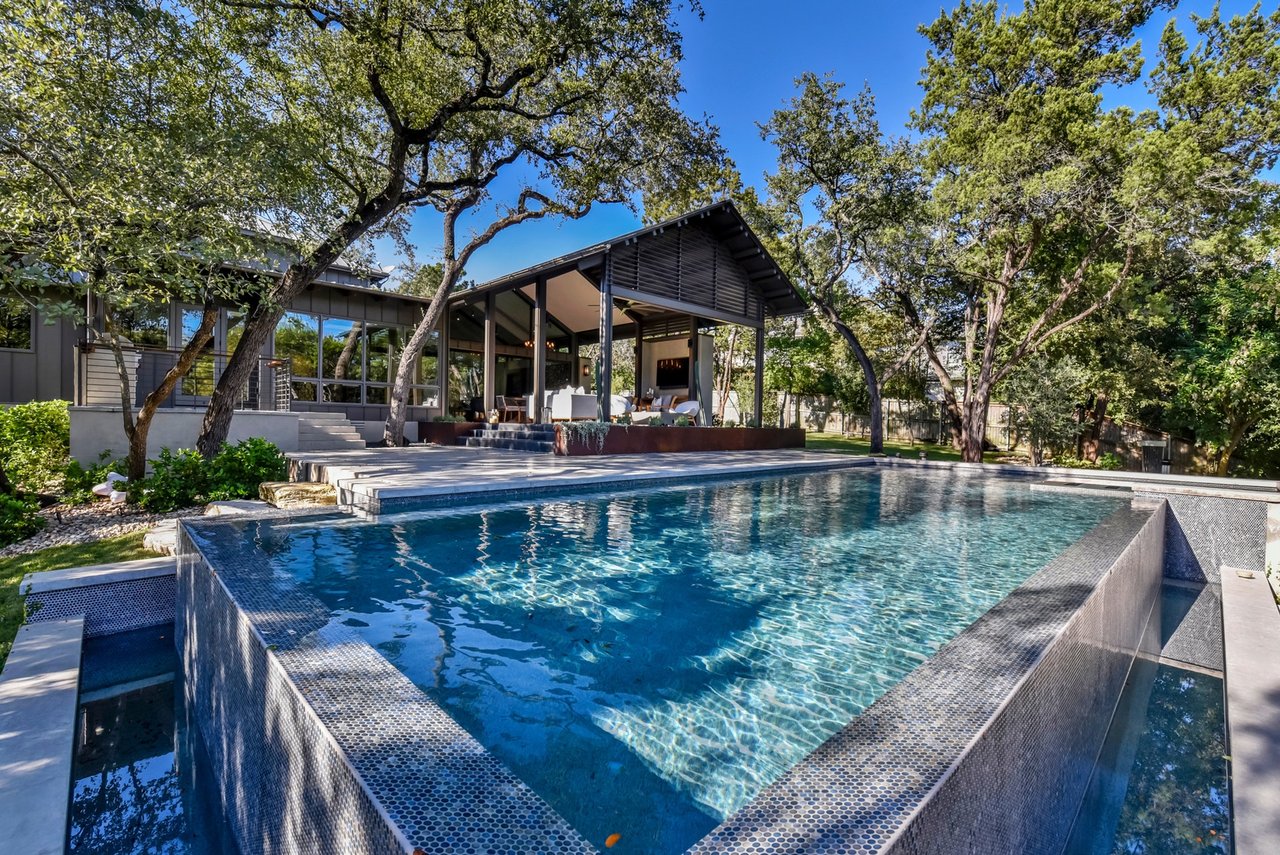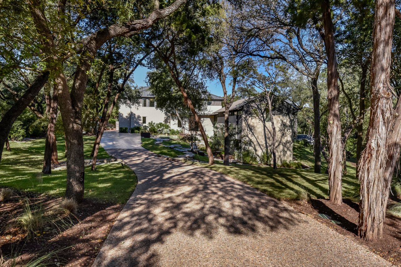 Located in convenient Rollingwood, The Bridge House, feels incredibly secluded considering it is less than five minutes from Mopac to the east and shopping and restaurants to the west. Originally constructed as an award-winning builder's personal home, the residence offers a mix of contemporary architecture and livable design. With over 1.16 acres of lawn and trees surrounding the structure, you’ll feel at peace the moment you arrive home.