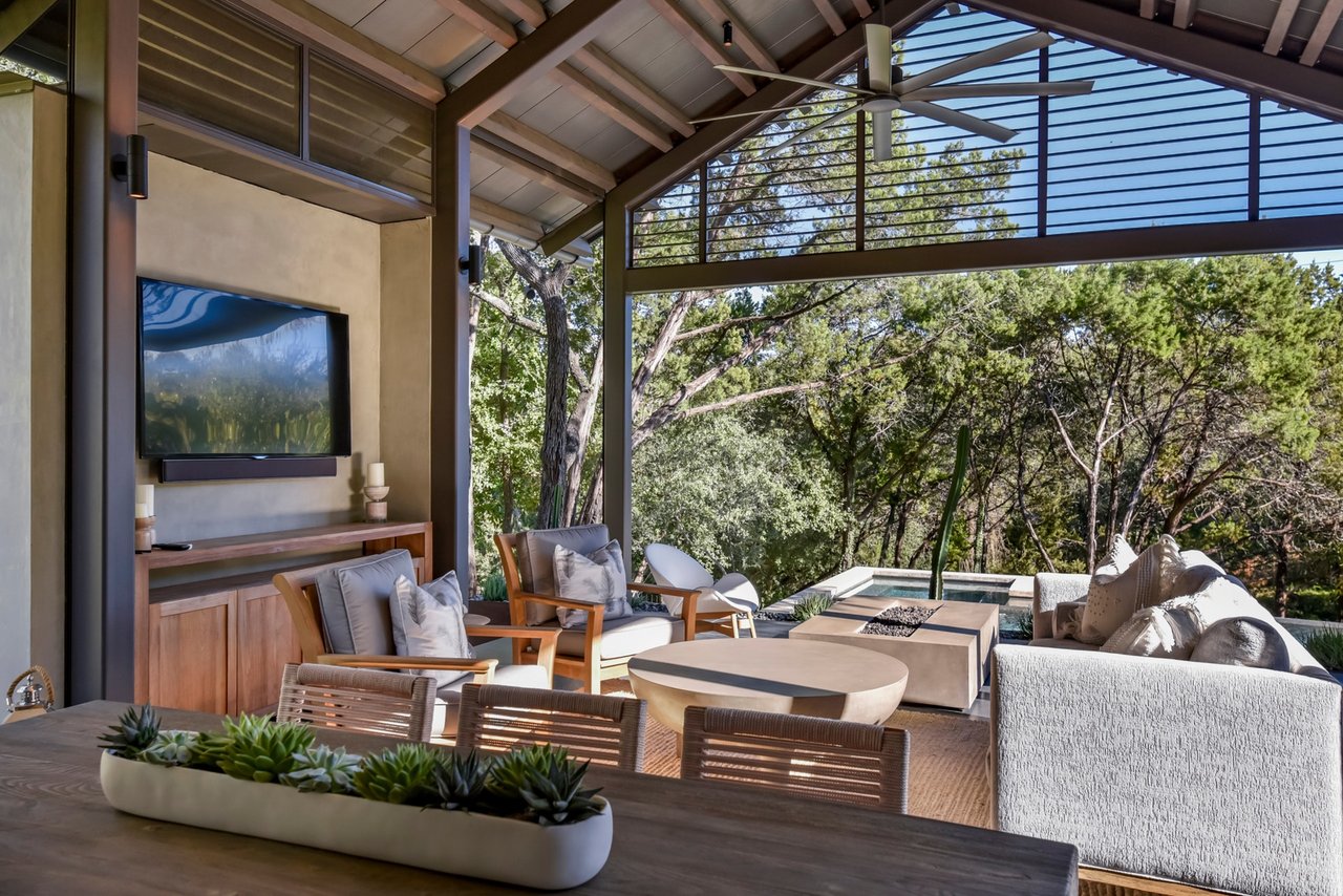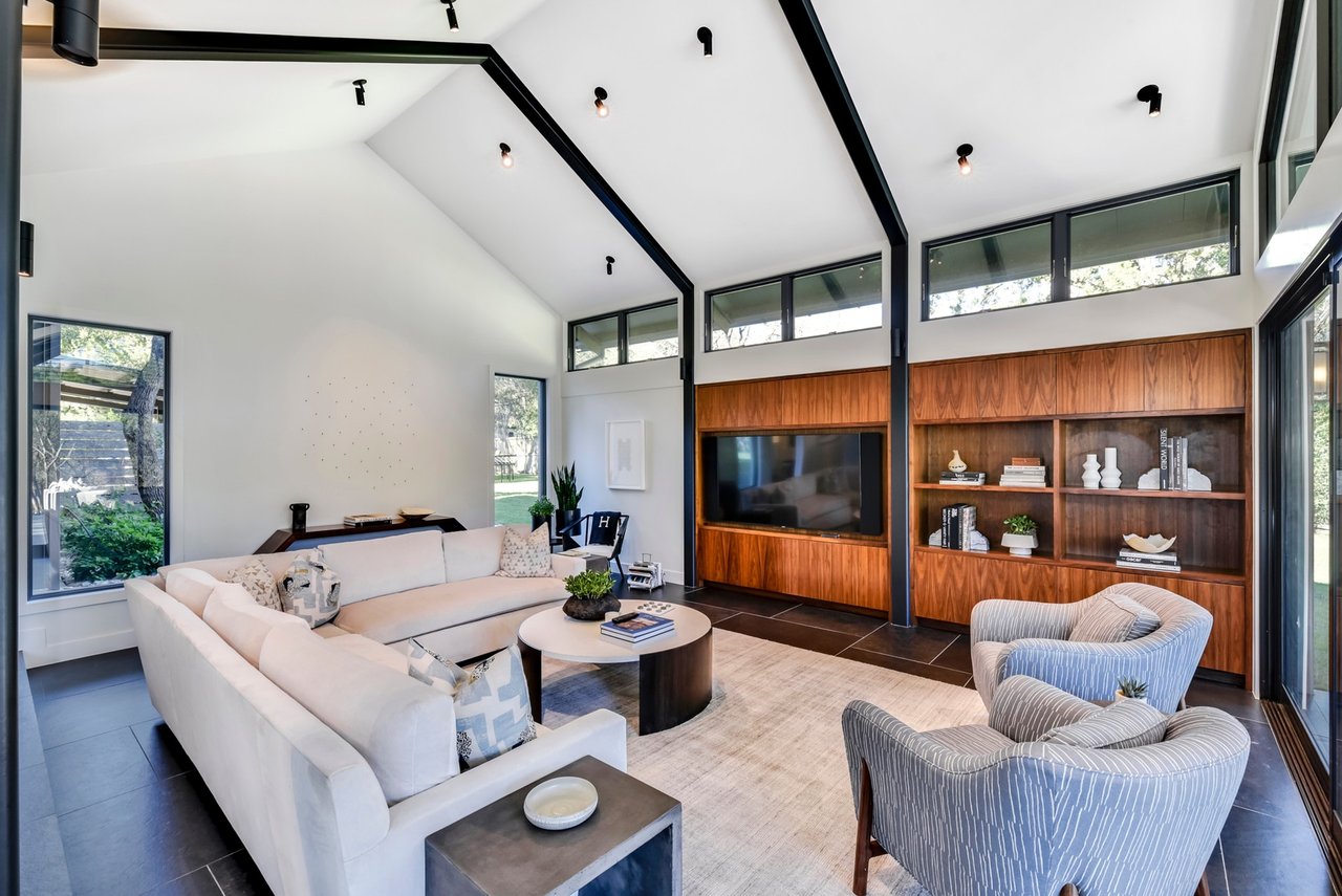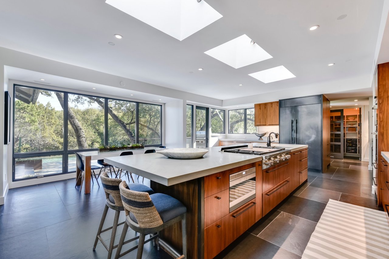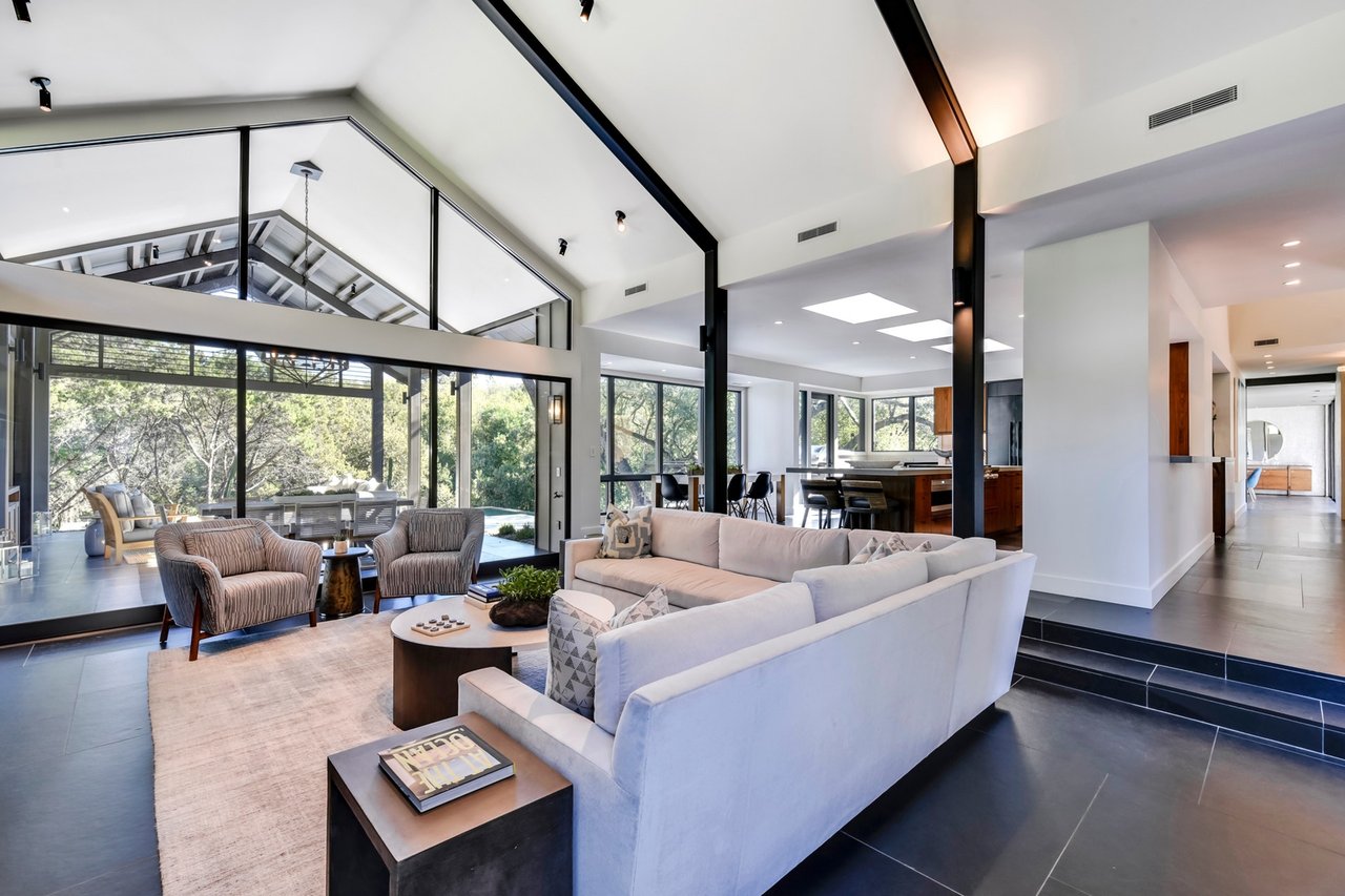 Located in convenient Rollingwood, The Bridge House, feels incredibly secluded considering it is less than five minutes from Mopac to the east and shopping and restaurants to the west. Originally constructed as an award-winning builder's personal home, the residence offers a mix of contemporary architecture and livable design. With over 1.16 acres of lawn and trees surrounding the structure, you’ll feel at peace the moment you arrive home.