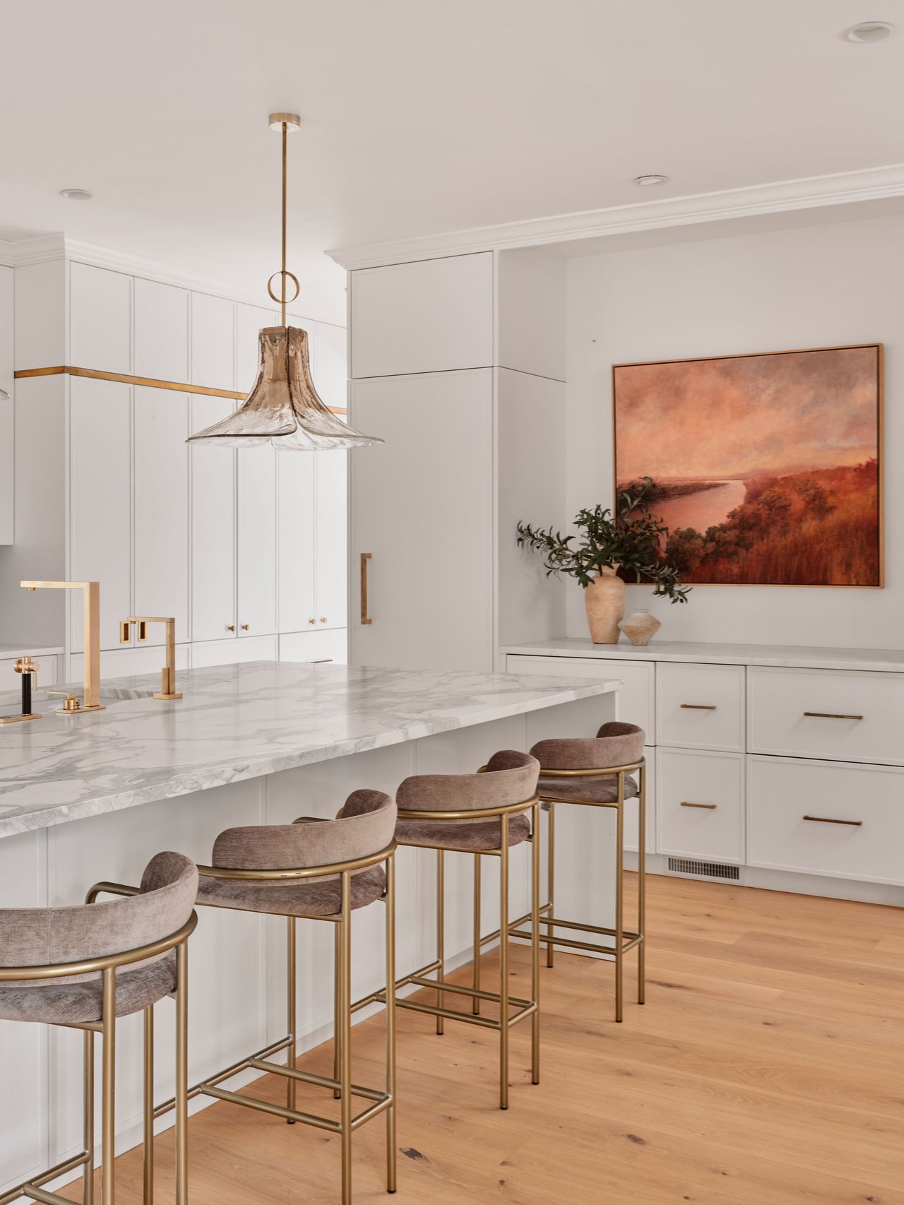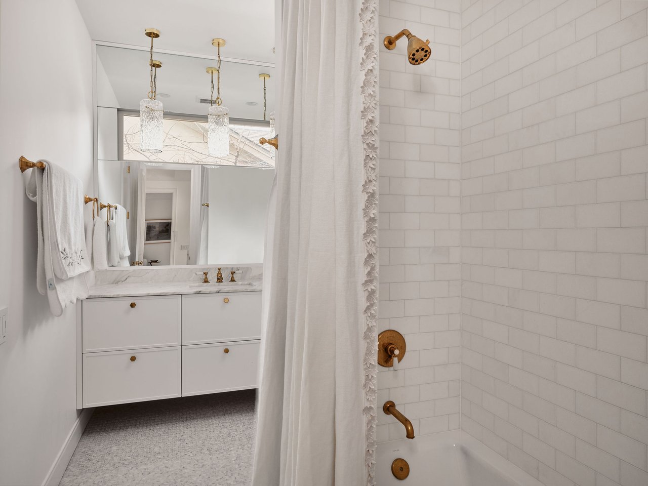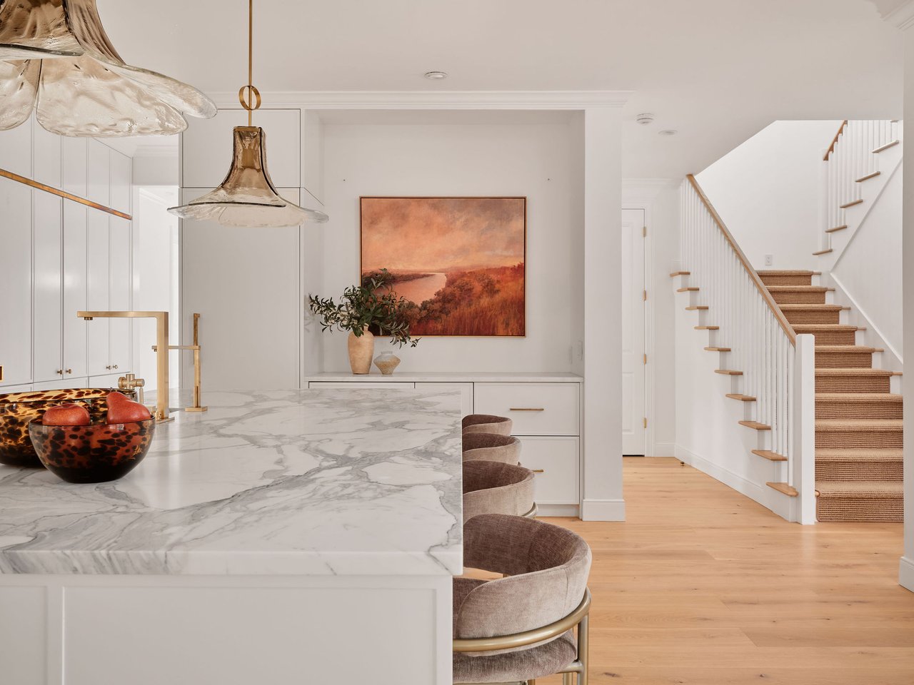The home features 4 bedrooms and 3.5 bathrooms, offering both elegance and livability in one of the city’s most sought-after locations. A beautifully designed private courtyard welcomes you with an outdoor fireplace, a tranquil fountain, and dining and lounge areas all surrounded by privacy-driven landscaping, creating an immersive hidden garden experience on a quiet Tarrytown street. The kitchen and entertaining spaces are outfitted with a Wolf and Sub-Zero appliance suite, along with a full wet bar featuring a beverage fridge, wine fridge, and ice maker, all complemented by Alexander Marchant hardware. Imported natural marble, including Calacatta Gold Bettogli, Bianco Rhino, and Cristallo, creates visual interest through full-height slab backsplashes and honed finishes.