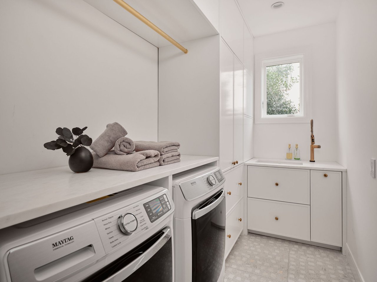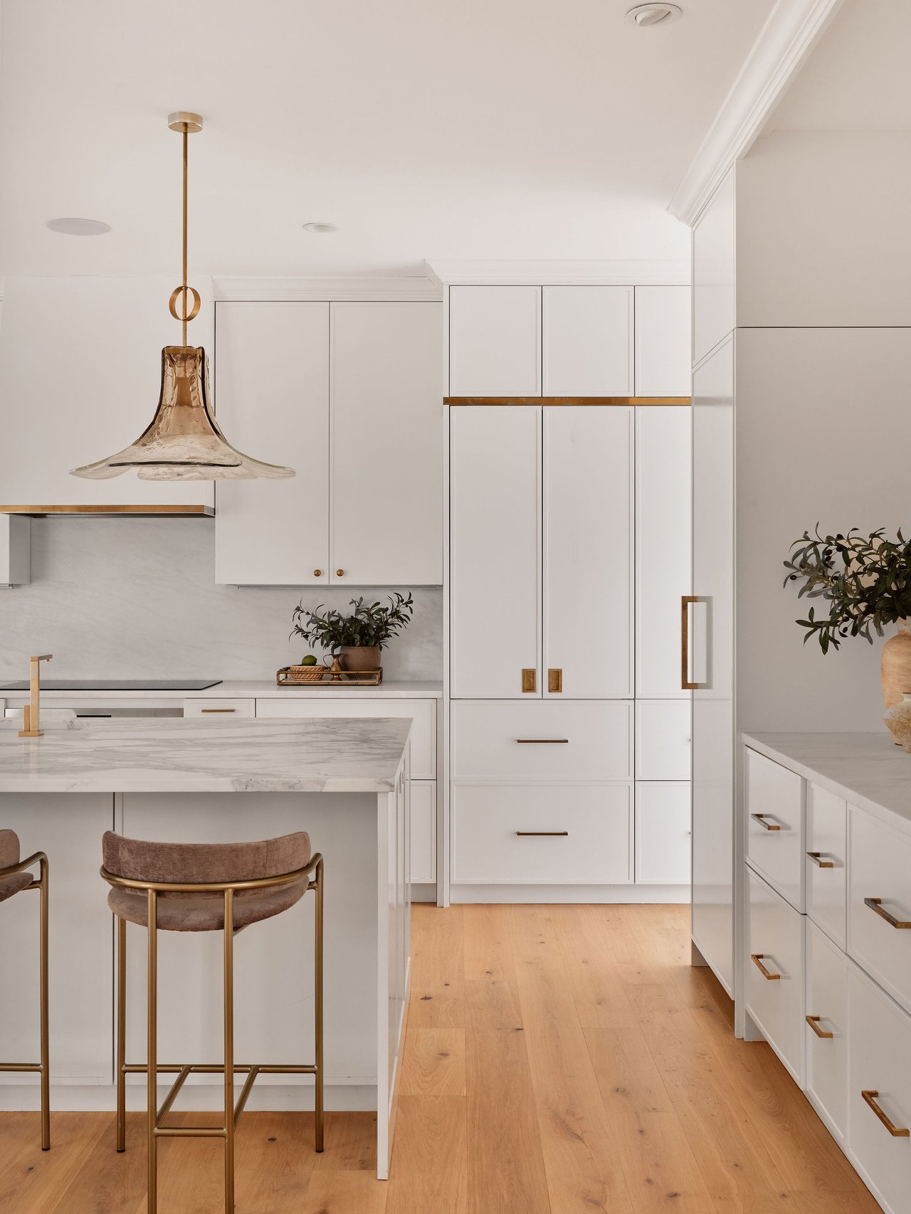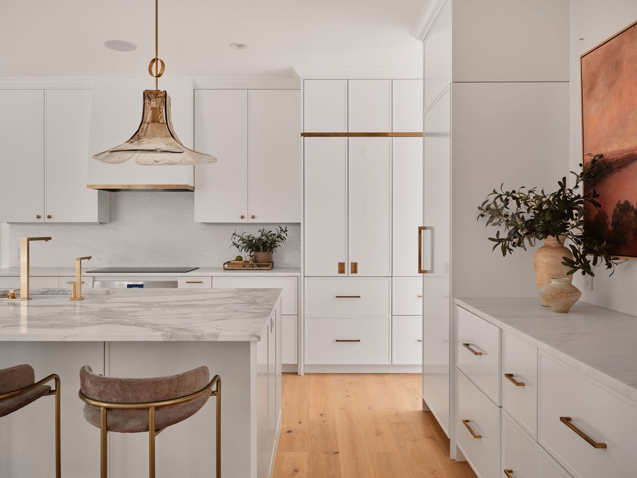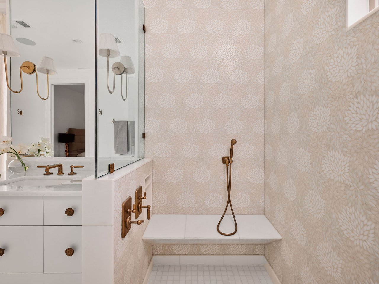 The home features 4 bedrooms and 3.5 bathrooms, offering both elegance and livability in one of the city’s most sought-after locations. A beautifully designed private courtyard welcomes you with an outdoor fireplace, a tranquil fountain, and dining and lounge areas all surrounded by privacy-driven landscaping, creating an immersive hidden garden experience on a quiet Tarrytown street. The kitchen and entertaining spaces are outfitted with a Wolf and Sub-Zero appliance suite, along with a full wet bar featuring a beverage fridge, wine fridge, and ice maker, all complemented by Alexander Marchant hardware. Imported natural marble, including Calacatta Gold Bettogli, Bianco Rhino, and Cristallo, creates visual interest through full-height slab backsplashes and honed finishes.