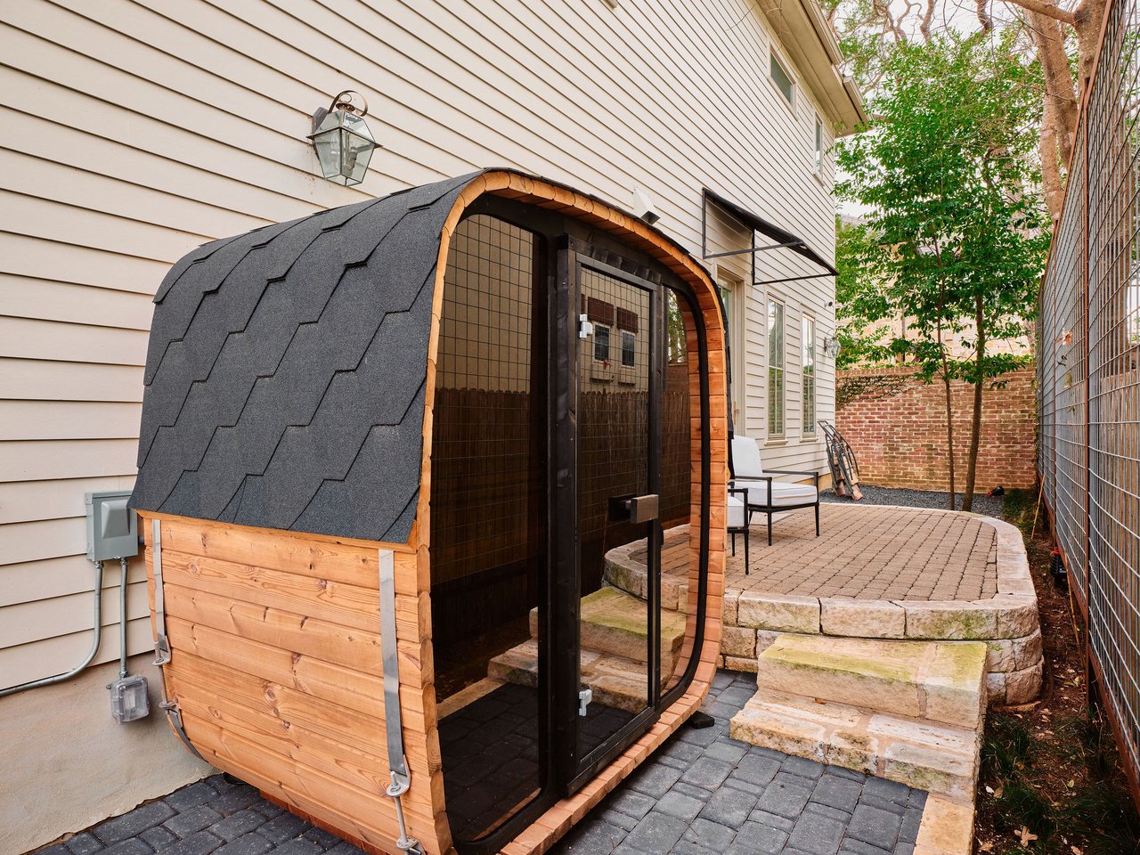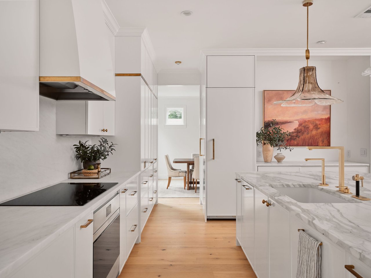 Every detail has been curated for both beauty and comfort, from designer marble tile bathrooms to whole-home Lutron lighting and Sonos audio. Outside, a dedicated wellness area with a sauna enhances everyday living, while professionally redesigned landscaping by Thompson + Hanson Landscape Architects creates a serene outdoor backdrop. At 1408 Elton Lane, timeless materials, thoughtful design, and an exceptional Tarrytown setting come together in a residence that feels elevated and effortlessly livable.