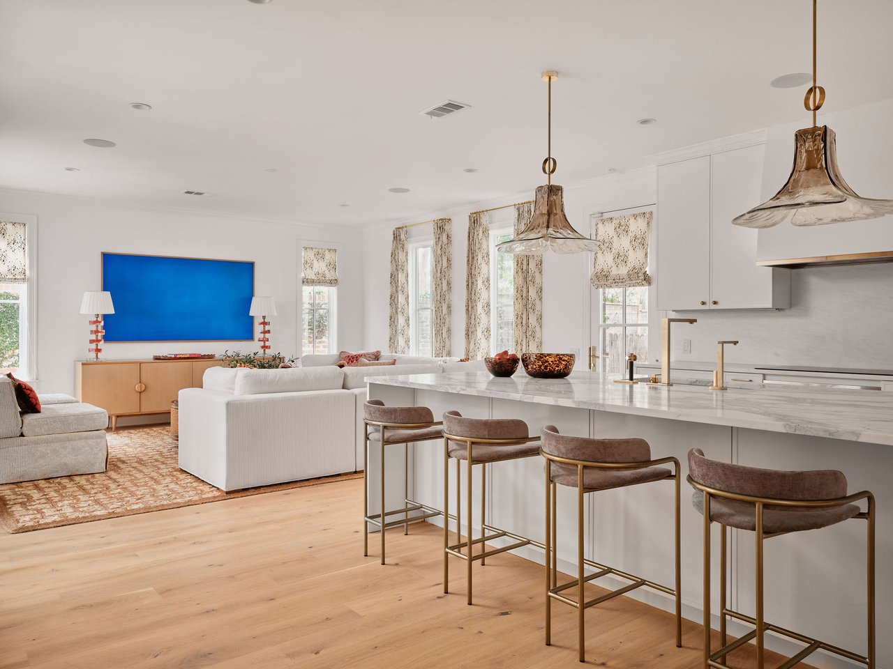 Situated on a quiet street in Austin’s premier Tarrytown neighborhood, 1408 Elton Lane offers a thoughtful take on modern luxury living. An extensive full-home renovation was completed in 2021, creating a showcase of designer-led, light-filled interiors with wide-plank white oak floors, custom cabinetry and closets, and vintage Murano glass light fixtures sourced from Europe.