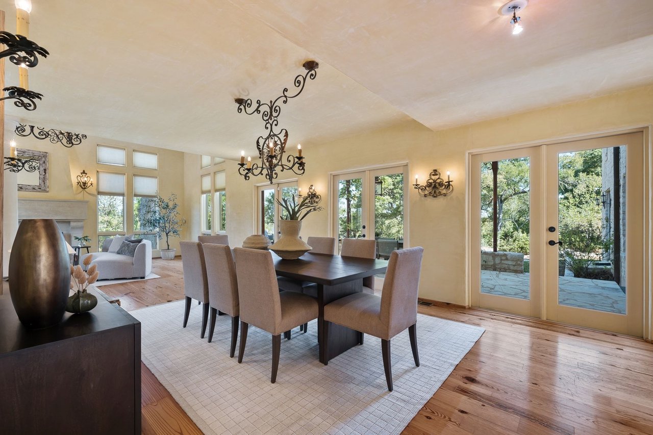 Set on ~ 6 serene acres just moments from Texas’ renowned wine country, 14721 Bear Creek Pass evokes the timeless charm of a Tuscan villa with the added luxury of a fully equipped guest house. The property’s stone and stucco exterior, arched doorways, and elegant outdoor space create an atmosphere of understated sophistication surrounded by sweeping Hill Country views. Every detail, from the warm tones to the wrought-iron accents, has been thoughtfully designed to capture the ambiance of the Italian countryside while offering the comfort of modern luxury.