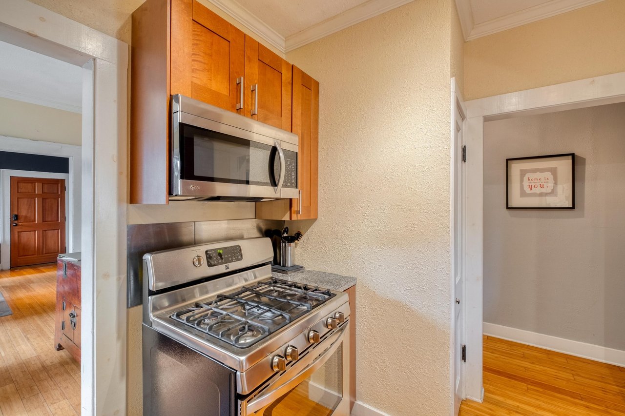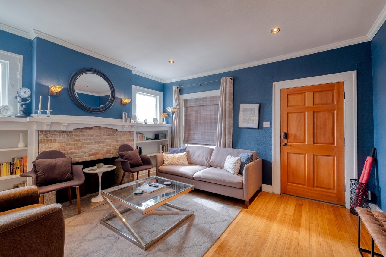 The interior was fully renovated in 2019, reimagining each space with luxurious finishes and elevated design. Two spacious bedrooms feature ample natural light. The spa-inspired bathrooms are outfitted with marble vanities and showers, premium fixtures, and thoughtful touches. The gourmet kitchen is ideal for home chefs, complete with high-end stainless appliances and a gas range.