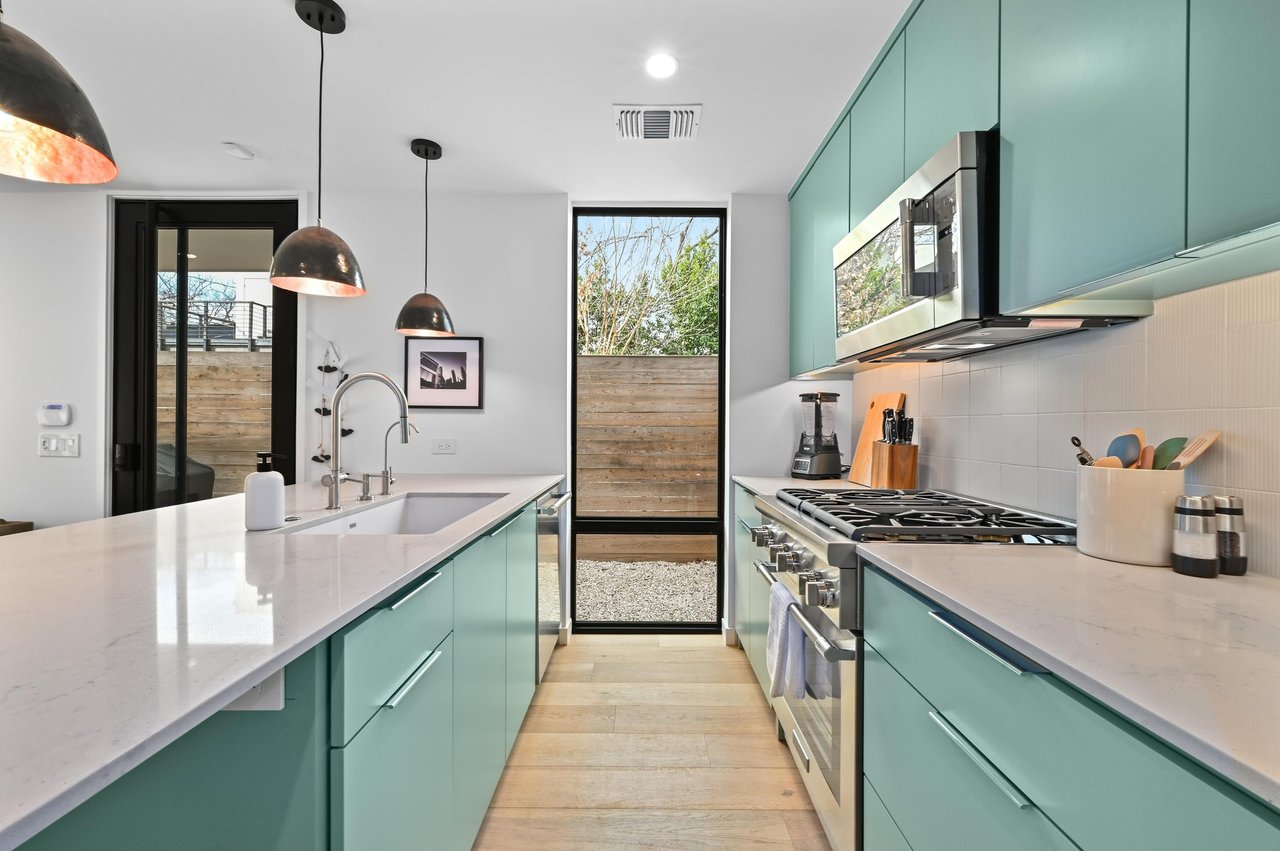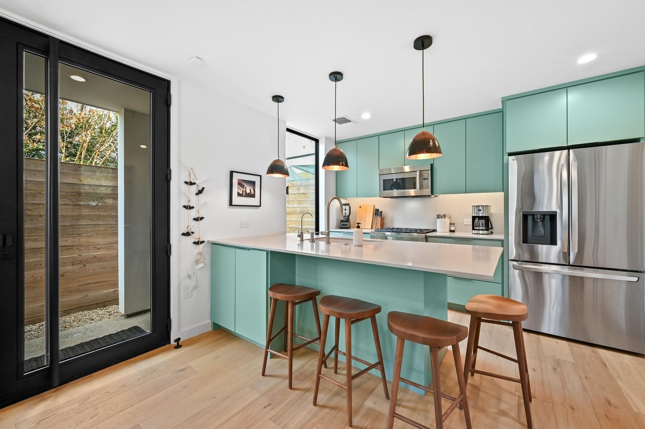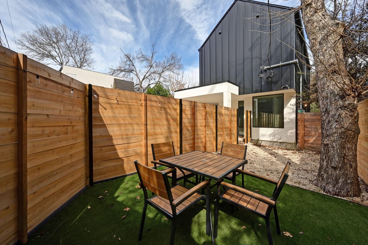Upstairs, both bedrooms are well-proportioned, with a full bath serving the secondary bedroom, while a convenient powder bath is located on the main level for guests. Outdoor features include a dog run/lounge area plus a private porch, perfect for relaxing or grilling. Additional features include a whole-house water filtration and water softener system, plus a stackable washer and dryer for added convenience. Ideally positioned in the heart of the Holly District, the property offers easy access to popular restaurants, local shops, and entertainment, delivering a refined, lock-and-leave lifestyle in one of the city’s most vibrant areas.