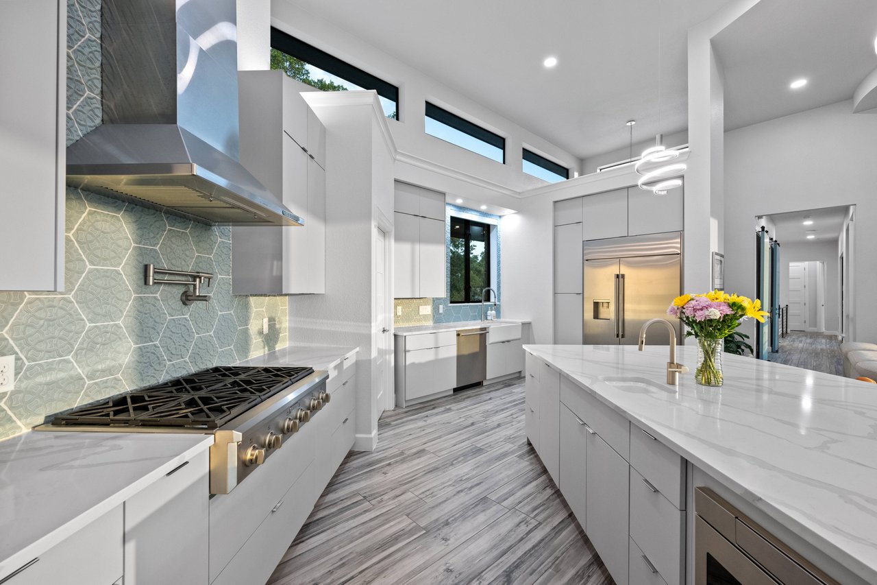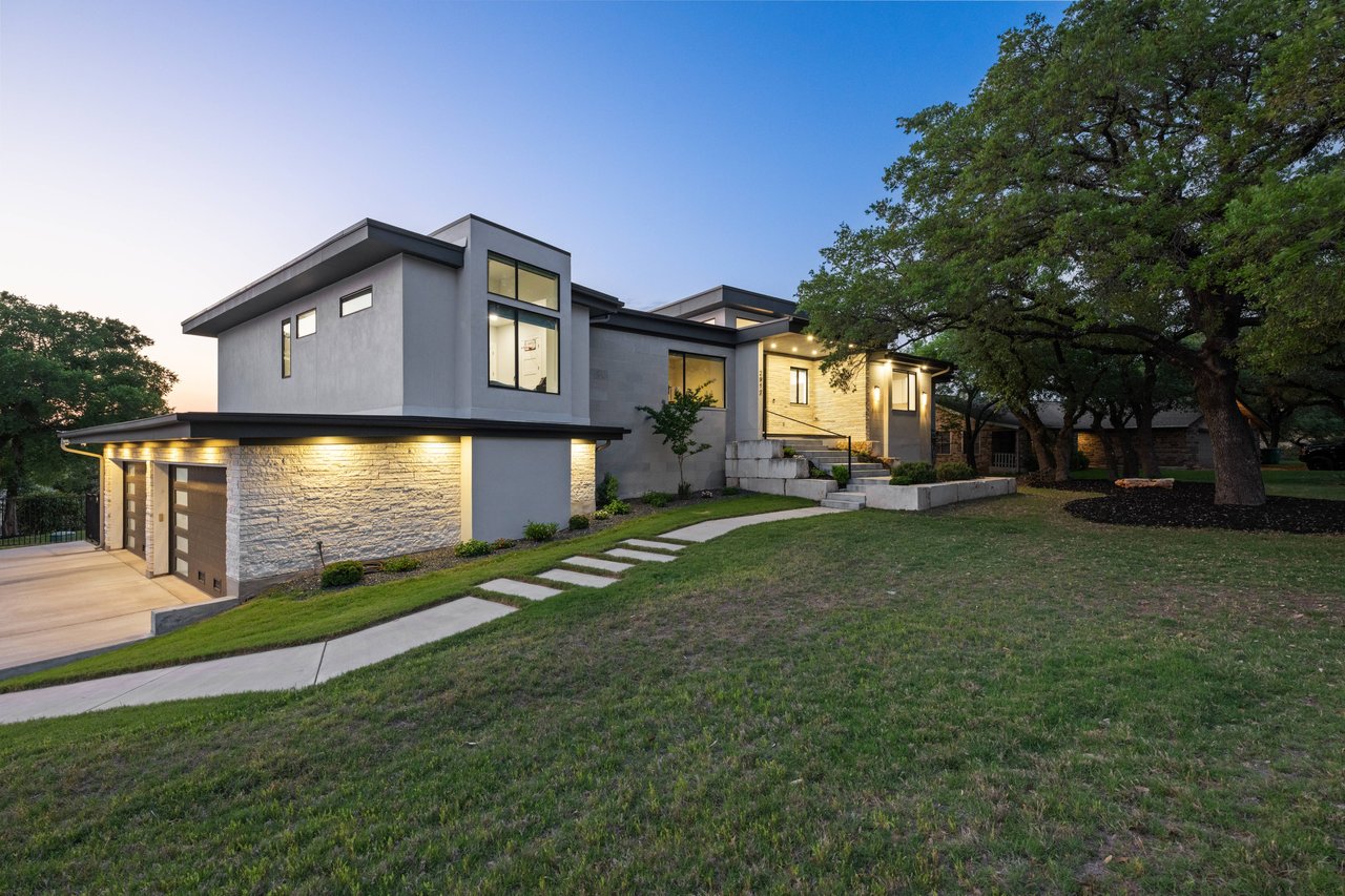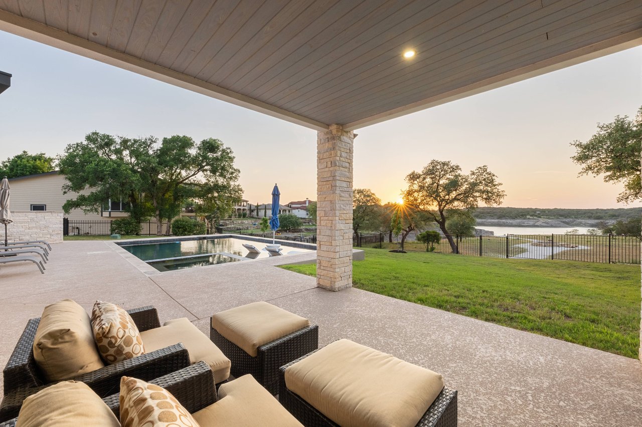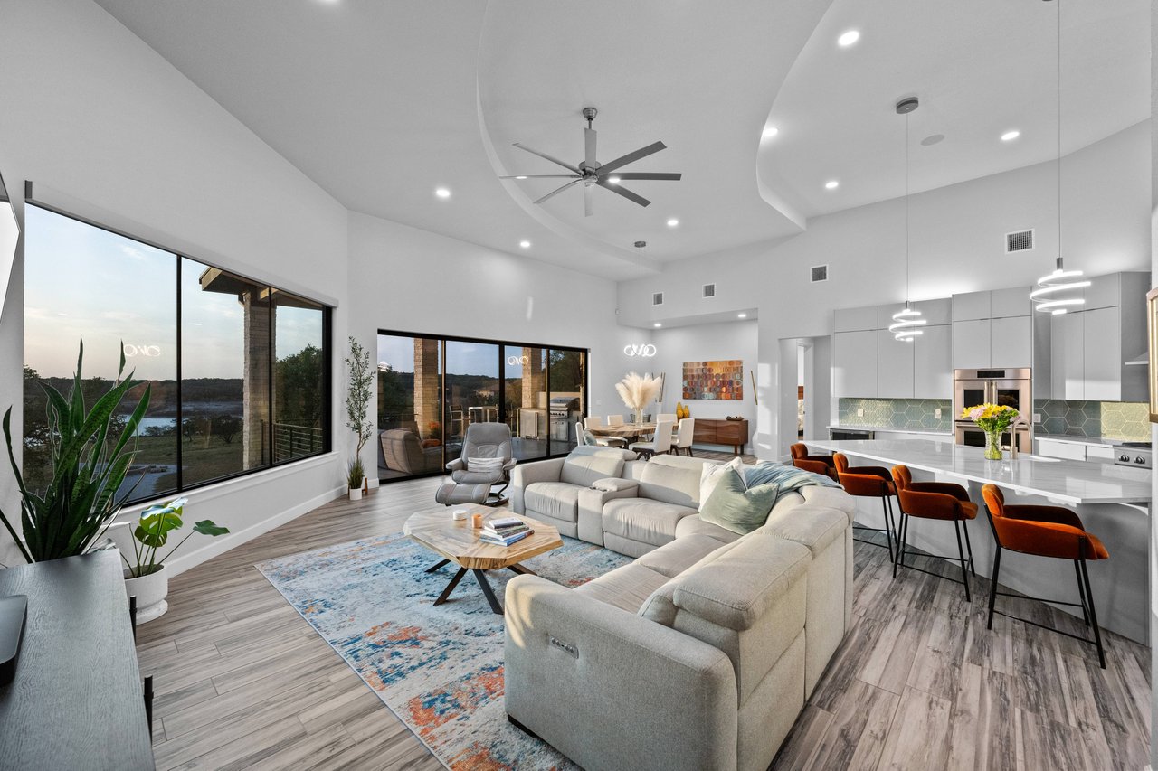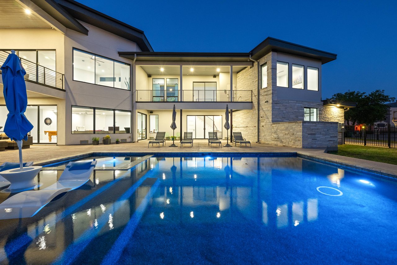 Perched on deep-water Lake Travis in Lago Vista, this exceptional 2019 Hill Country modern retreat captures the best of waterfront living with both cove and main-body access potential. Walls of windows frame sweeping Lake Travis and Hill Country views, while the hand-cut white limestone exterior blends seamlessly into the natural landscape. Overlooking the undeveloped beauty of Pace Bend Park, the setting offers rare privacy, dramatic scenery, and unforgettable sunsets—an ideal backdrop for a full-time residence, vacation home, or short-term rental opportunity.