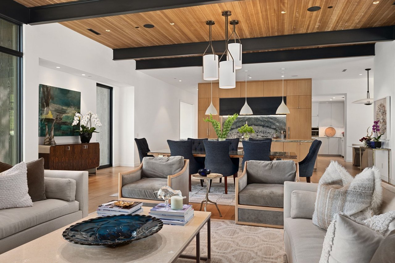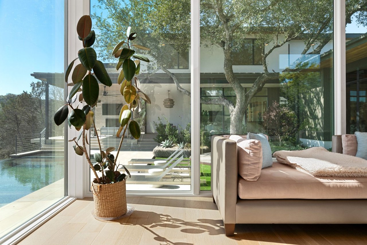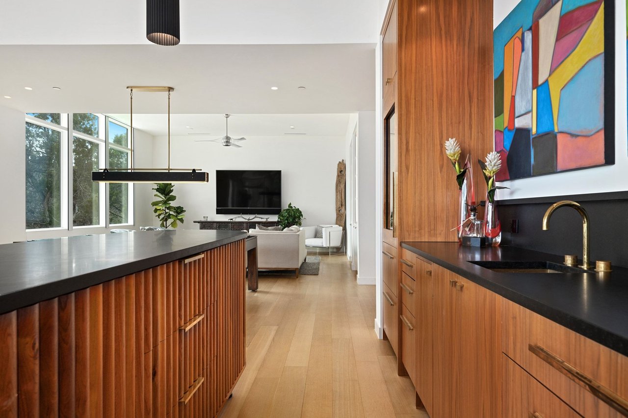 299 Cedar Oak Drive presents a newly constructed and thoughtfully designed three-story residence set on ~1.12 private acres in Eanes ISD. With 5 bedrooms, 5 full and 2 half bathrooms, the immaculate contemporary home offers generous space for both daily living and entertaining. The main level opens to a light-filled foyer with views of the pool and patio beyond. High ceilings and beautiful wood design elements harmonize in the open living room with a stone fireplace and the stunning kitchen outfitted with Wolf and Sub-Zero appliances, and statement stone countertops and backsplash. A separate prep kitchen adds convenience for entertaining, while a media room with a full bar enhances the home’s gathering spaces.