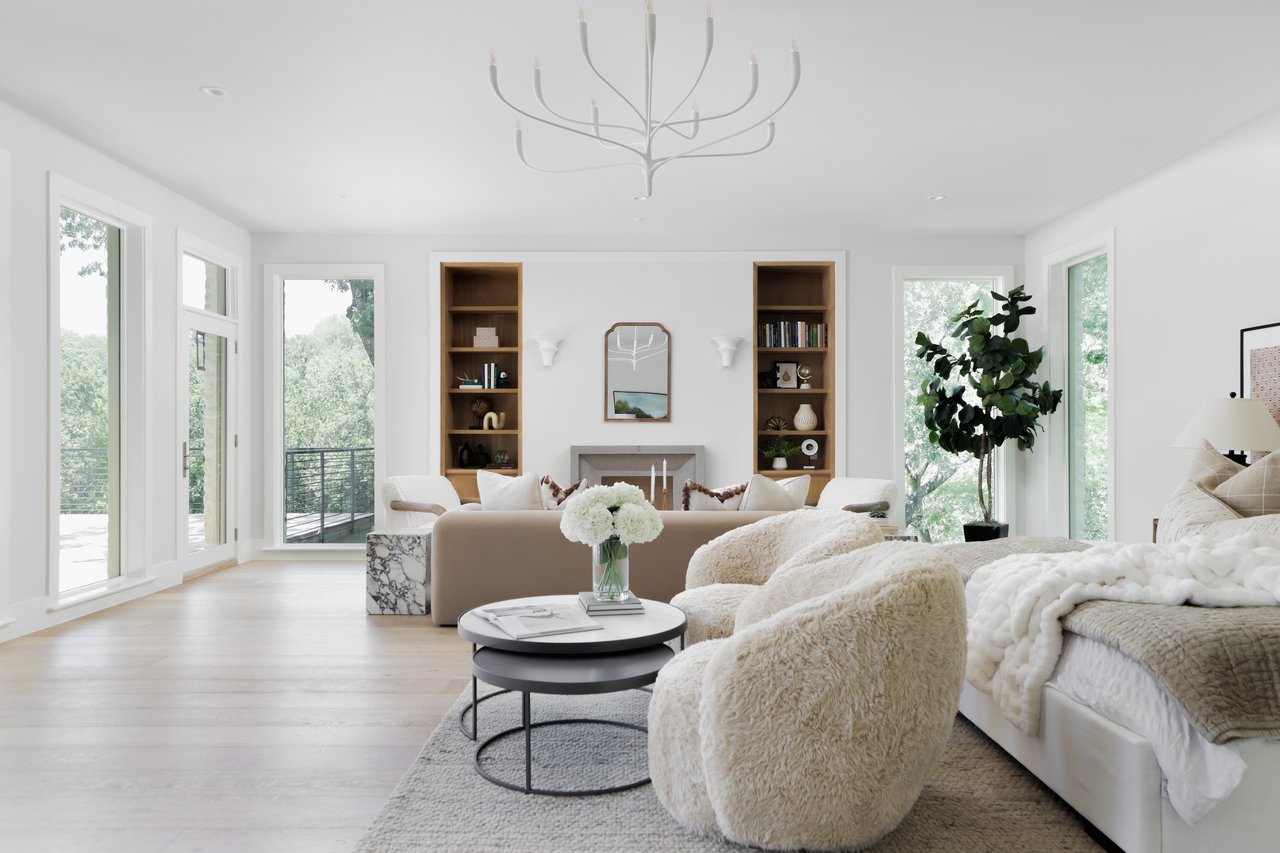 The first-level primary suite is a private escape with a fireplace surrounded by custom-built-ins, two walk-in closets, and a spa-like bathroom. Designed for both daily living and entertaining, the property includes a separate guest apartment—ideal for visitors, a home office, or a private studio. The backyard is anchored by a glistening pool and lush green surroundings that provide exceptional privacy. Every space reflects an attention to detail and a seamless connection between indoor comfort and outdoor serenity.