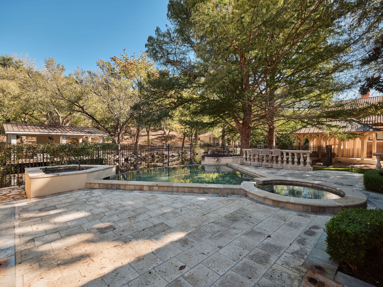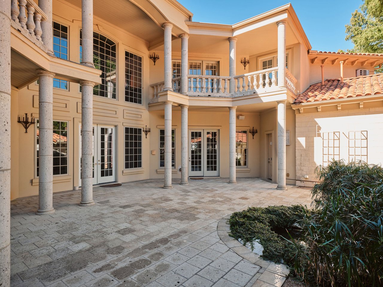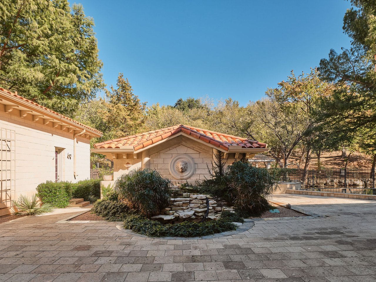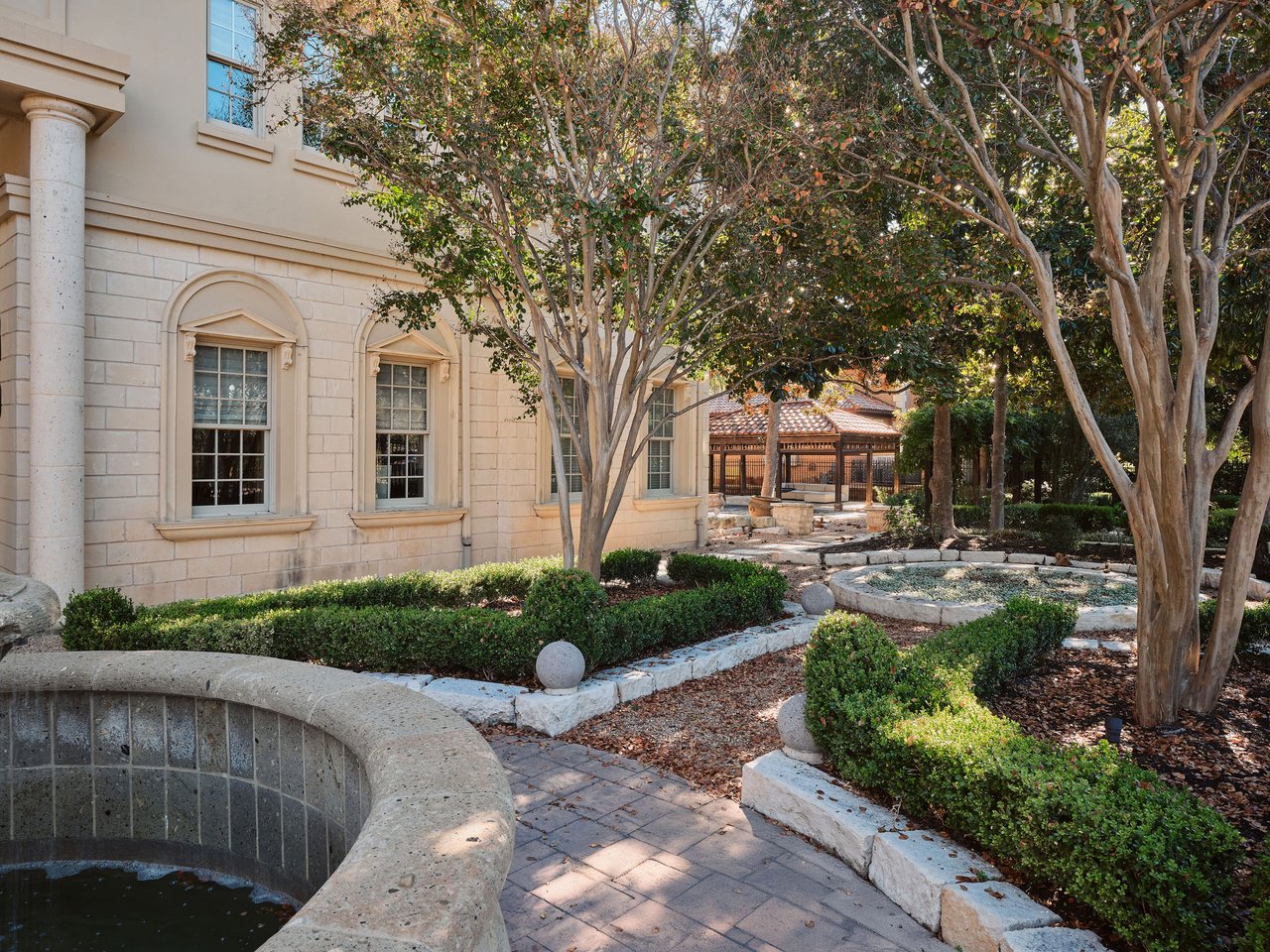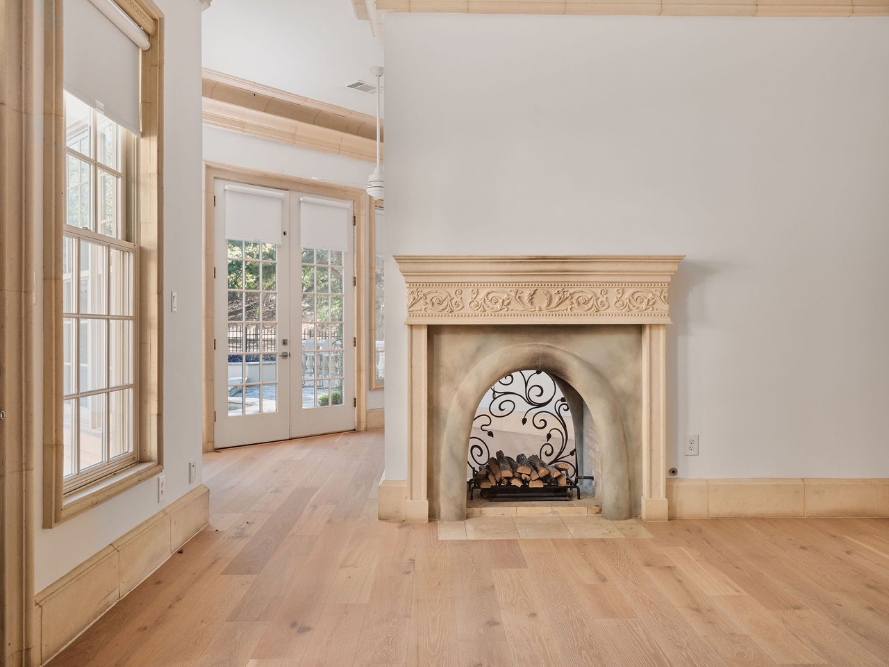 As you enter the home’s grand foyer you are welcomed by an esteemed double-height study adorned with rich wood finishes. The warm kitchen showcases wood-beamed ceilings, high-end stainless steel appliances, and a functional layout that opens to the main living area and dining room. Wine storage adds to the home’s entertaining appeal, while ample terraces and covered patios extend the living experience outdoors. The expansive primary suite serves as a private escape, featuring a double-sided fireplace, direct access to the backyard oasis, and a massive, spa-like bathroom.