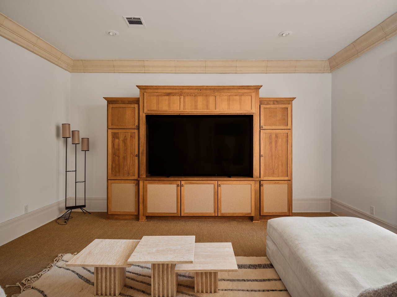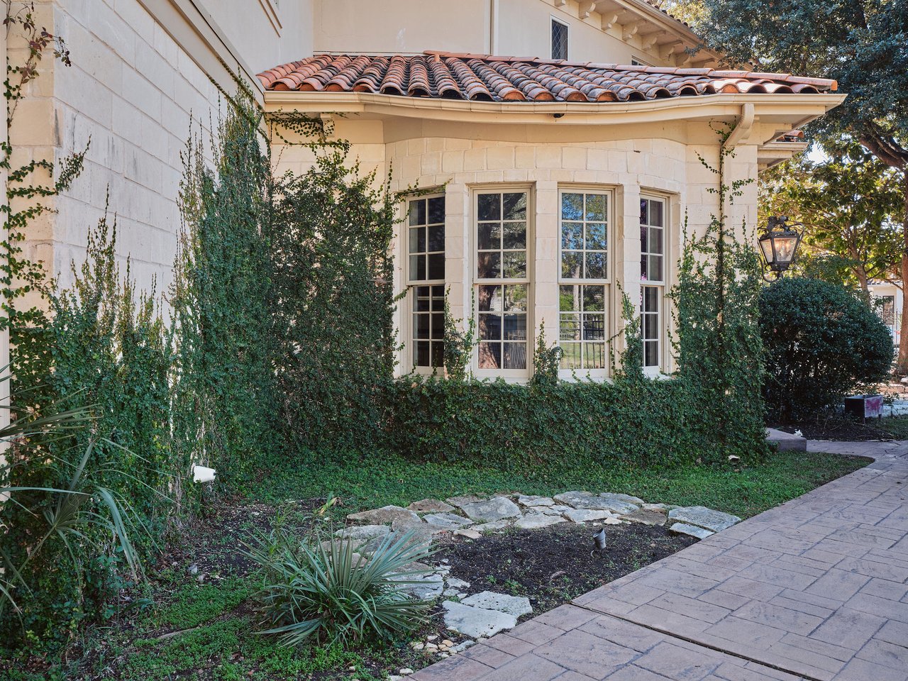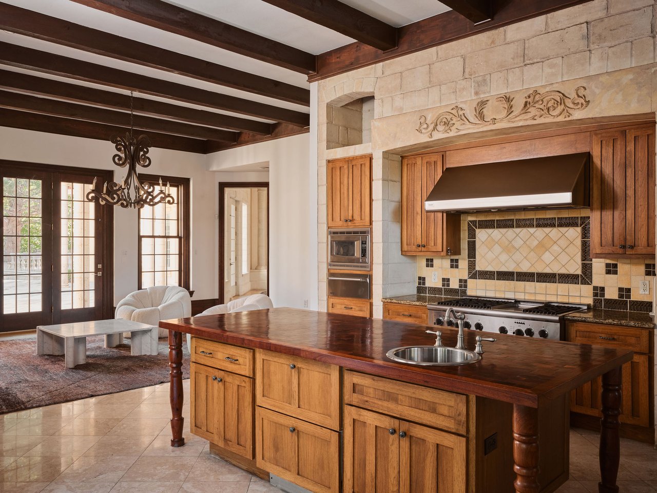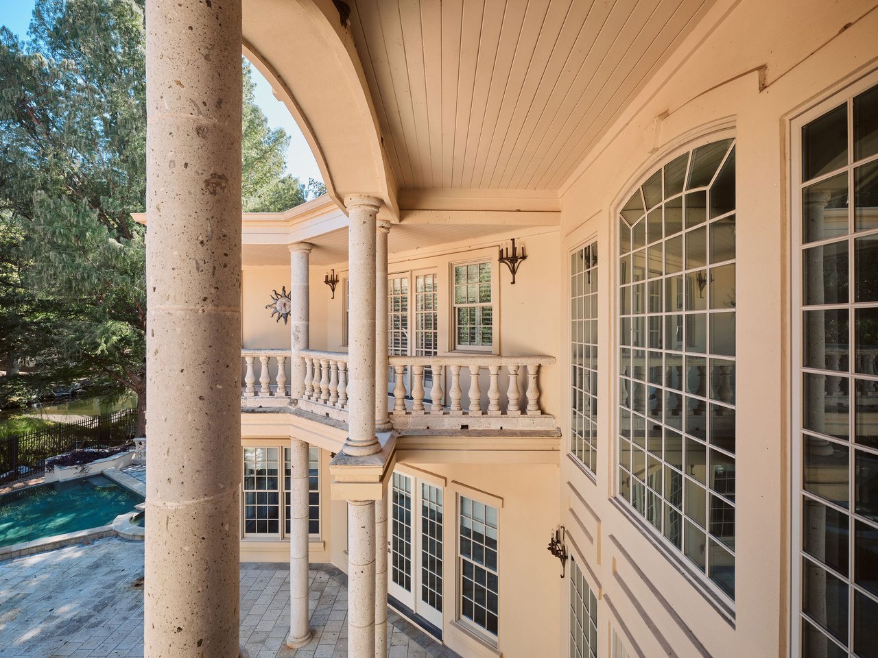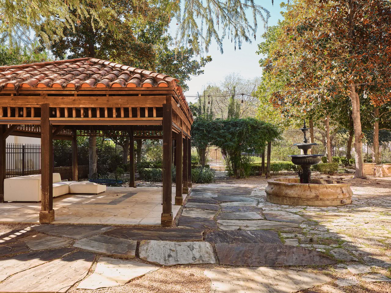 As you enter the home’s grand foyer you are welcomed by an esteemed double-height study adorned with rich wood finishes. The warm kitchen showcases wood-beamed ceilings, high-end stainless steel appliances, and a functional layout that opens to the main living area and dining room. Wine storage adds to the home’s entertaining appeal, while ample terraces and covered patios extend the living experience outdoors. The expansive primary suite serves as a private escape, featuring a double-sided fireplace, direct access to the backyard oasis, and a massive, spa-like bathroom.