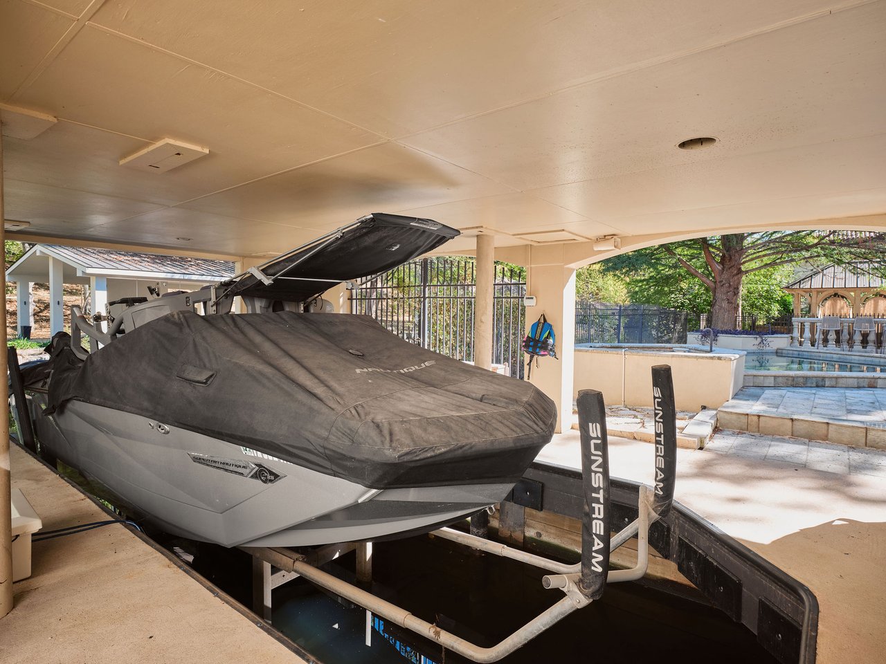 Outdoors, the serene grounds unfold toward the water, offering peaceful covered patios and multiple spaces to relax or entertain. A private hydraulic boat slip provides effortless access to Lake Austin living. Residents enjoy privacy, security, and a premier waterfront lifestyle just moments from downtown Austin. This exceptional property blends timeless architecture, thoughtful craftsmanship, and an unparalleled location to create a truly special retreat on the water.