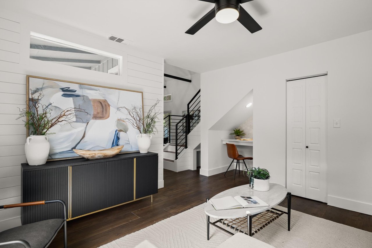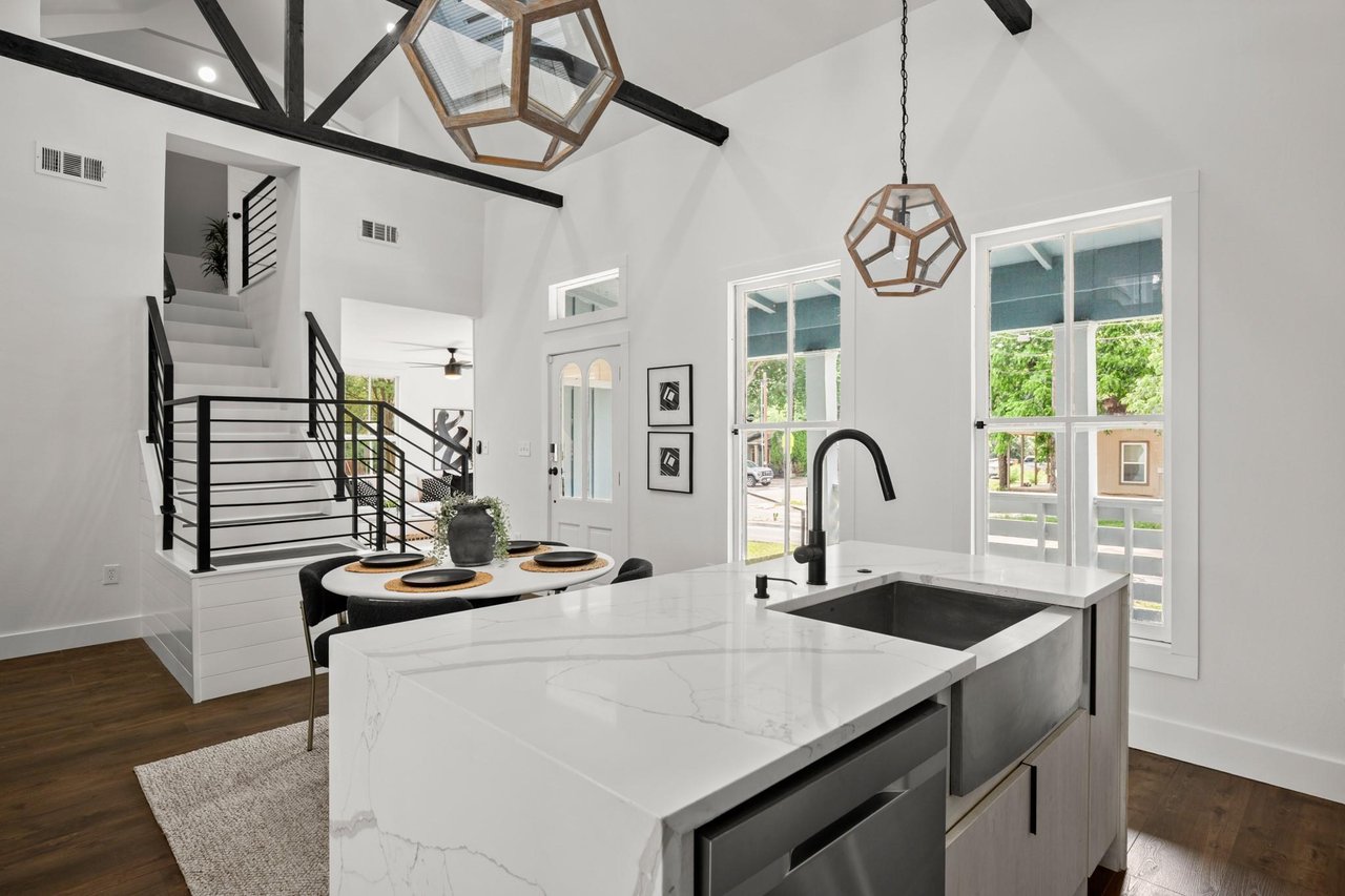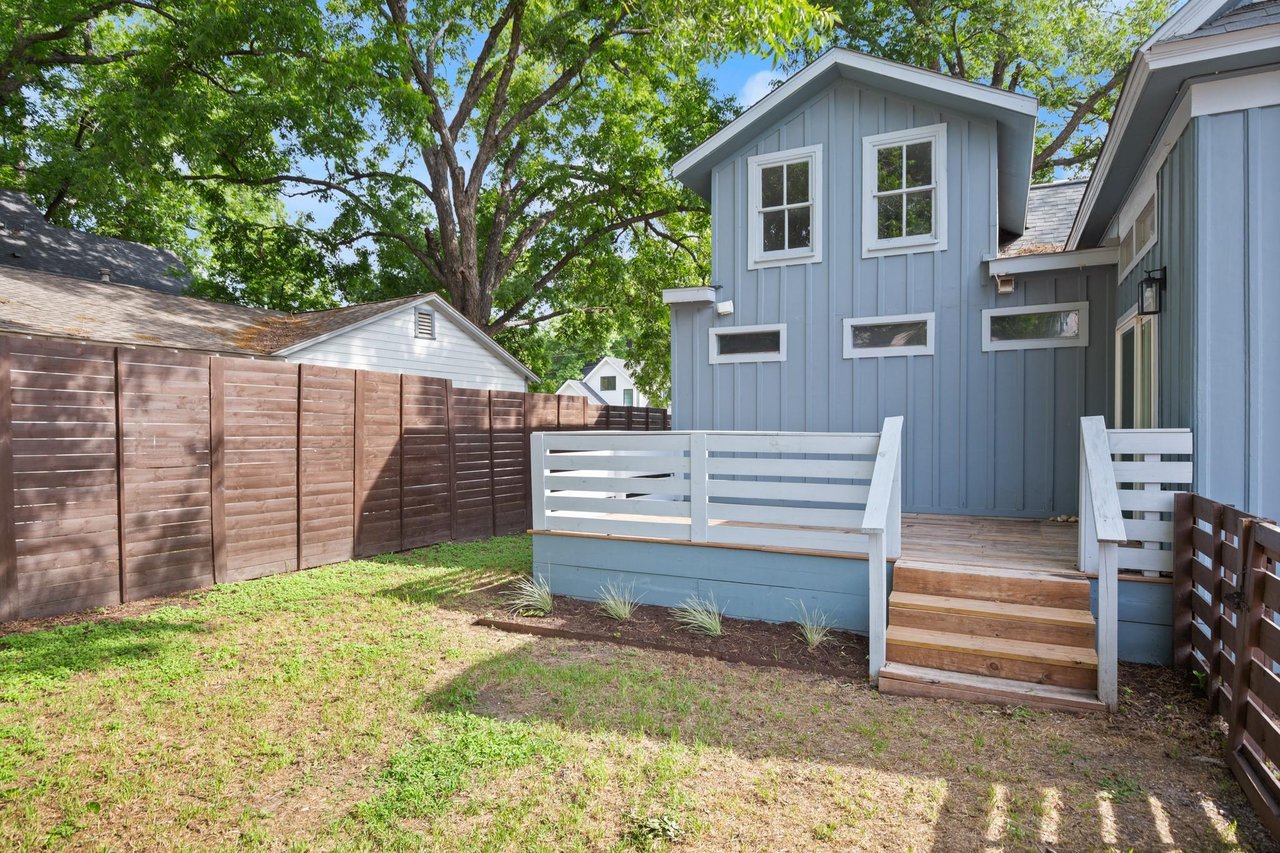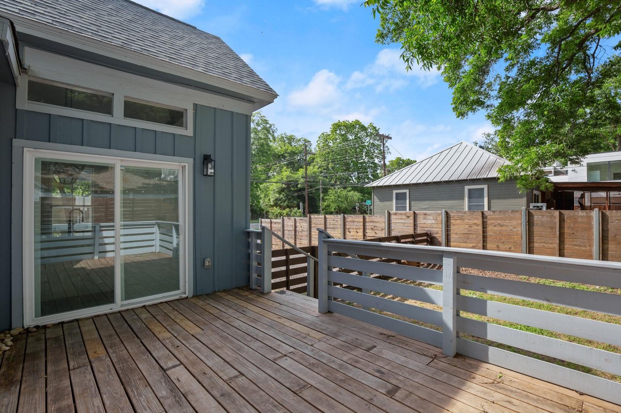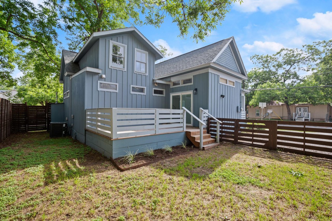 SELLER OPEN TO BUYING RATE DOWN INTO THE 5% RANGE - Beautifully renovated modern bungalow in Holly, East Austin's hottest neighborhood. Experience the best of East Austin living in this beautifully renovated, two-story modern bungalow. Just a 2-minute walk to Lady Bird lake, downtown Austin, and some of the city's most vibrant nightlife, coffee shops, yoga studios, shopping, and dining. Light-filled and thoughtfully designed, this 3-bedroom, 3-bathroom home with a home office features an open-concept layout with soaring beamed ceilings, striking shiplap accent walls, and expansive windows that flood the space with natural light. Downstairs you will find an open floor plan concept connecting the kitchen, living room and dining room. The stylish kitchen is a chef’s dream with a large center island perfect for gathering with quartz countertops, ample cabinetry, storage and stainless steel appliances. Tons of unique touches throughout the home include a cozy pet nook under the stairs, a dry bar/office niche, and a spacious upstairs flex/loft area perfect for a media room, playroom, gameroom or home gym. Retreat to the main-level primary suite complete with a luxurious walk-in shower featuring dual shower heads, double vanities, and a generous walk-in closet. This home is ideal for entertaining with a fabulous front porch patio as well as a private, fenced back yard shaded by mature trees giving the backyard a great cozy vibe. This home is a gem on all levels!