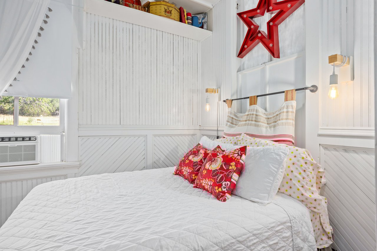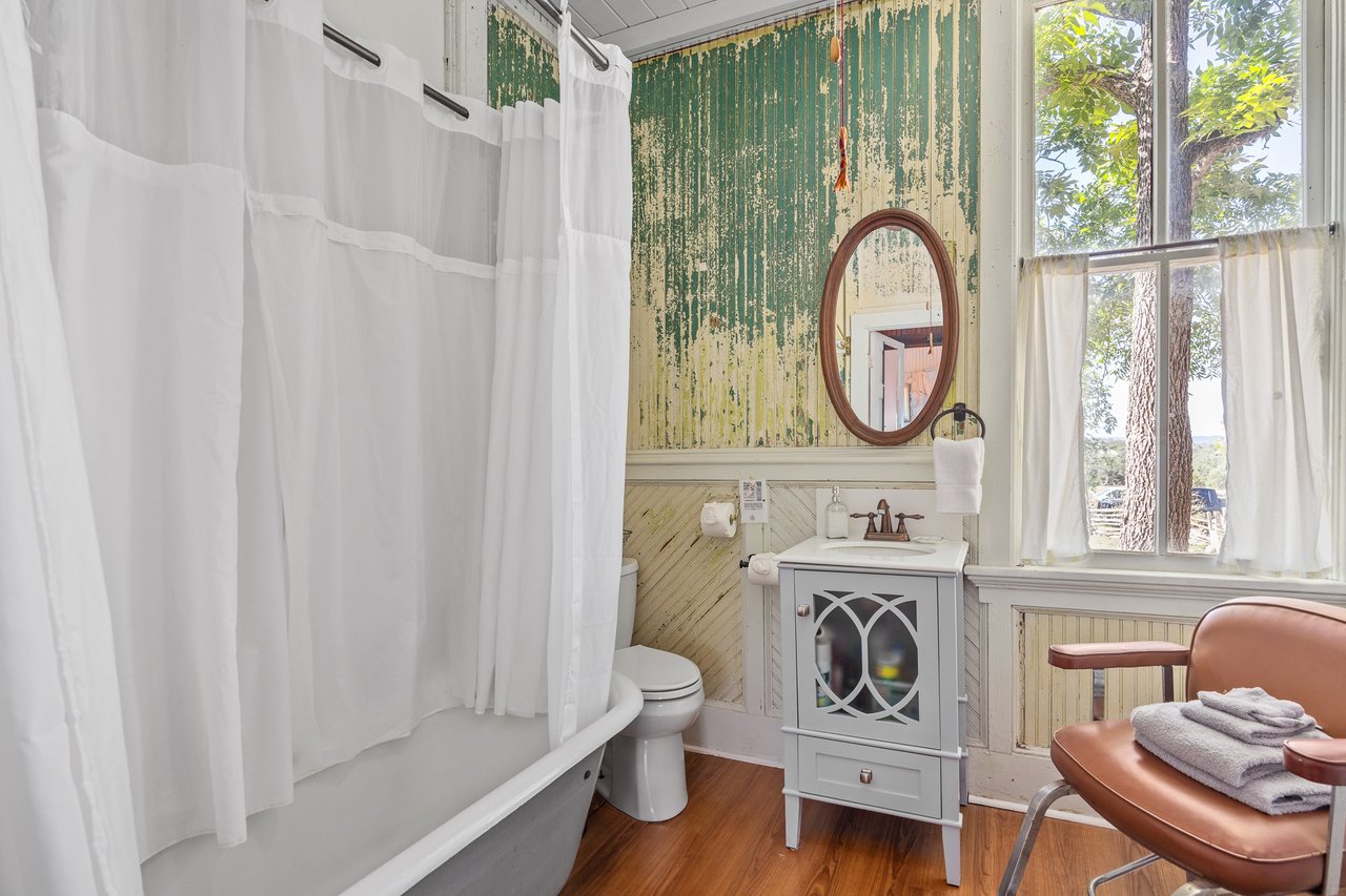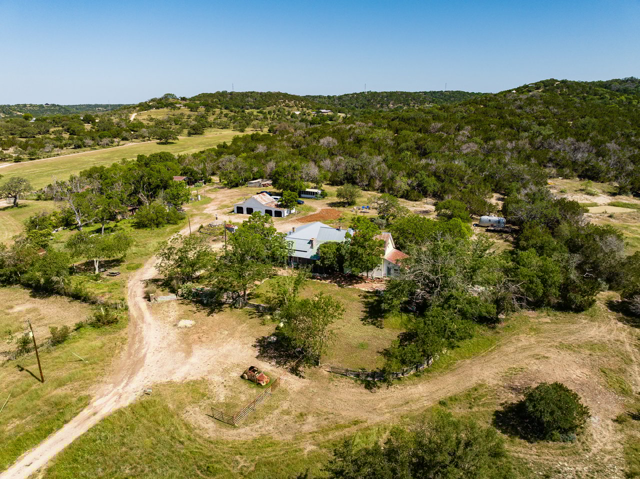 Set on ~40 acres in the heart of the Texas Hill Country, 684 Stoneleigh Ranch Road presents a rare opportunity to own a beautifully restored 1883 farmhouse steeped in history and character. The main residence offers three bedrooms, two bathrooms, two inviting living areas, and an updated kitchen, thoughtfully balanced with preserved original details including cypress floors, beadboard, and shiplap. Edward B. Leigh, president of the Chicago Railway Equipment Company, imported the hardwood floors in the living room and guest bedroom by an ox-drawn cart from his display at the 1893 Chicago World's Fair. Modern comforts such as insulated windows and durable Hardie plank siding complement the home’s timeless appeal. A charming guest house with its own living area, kitchenette, spacious bedroom, large bath, and additional loft area provides ideal accommodation for visitors. An inviting outdoor patio features a pig smoker adjacent to a detached 2-car garage.