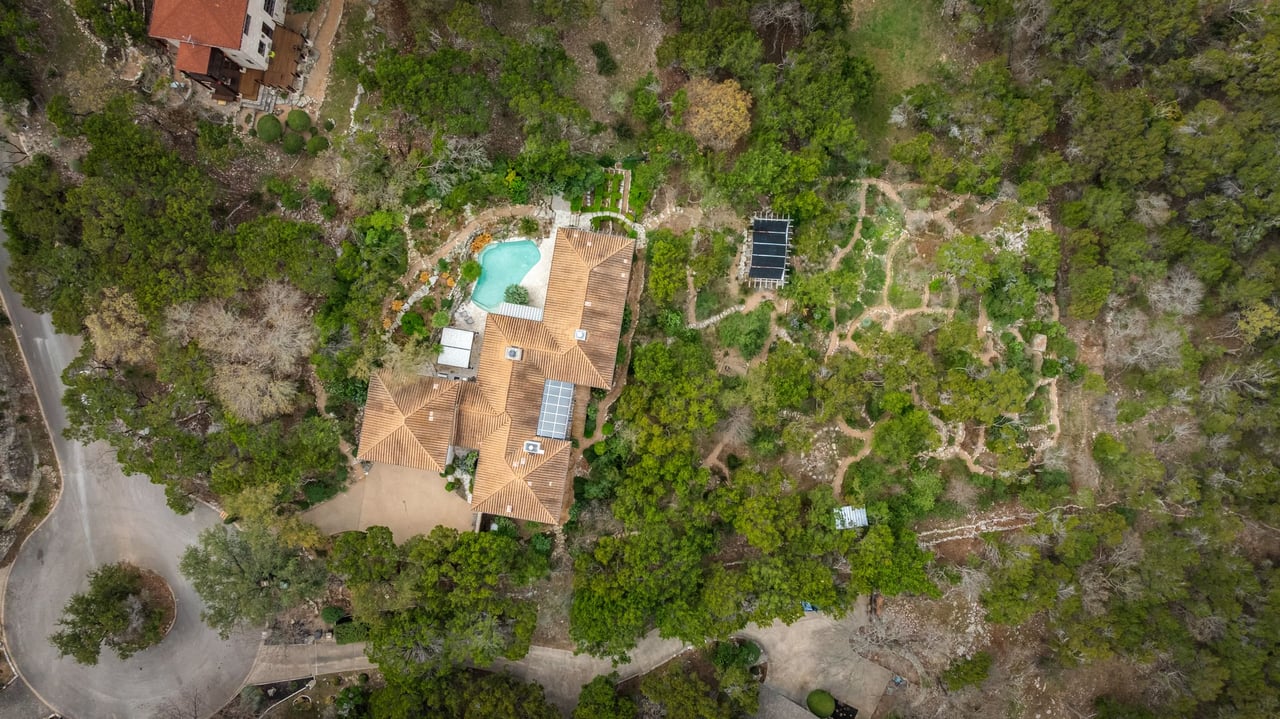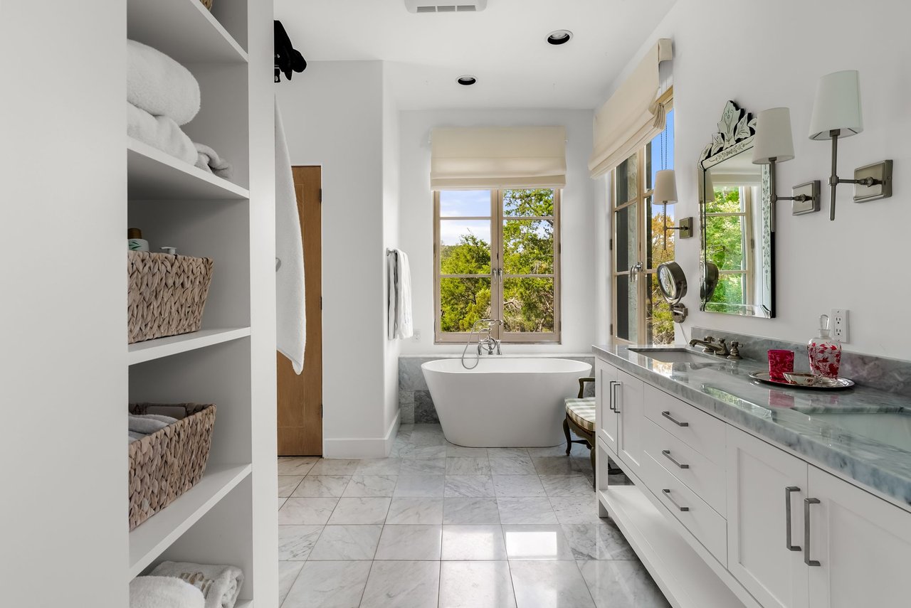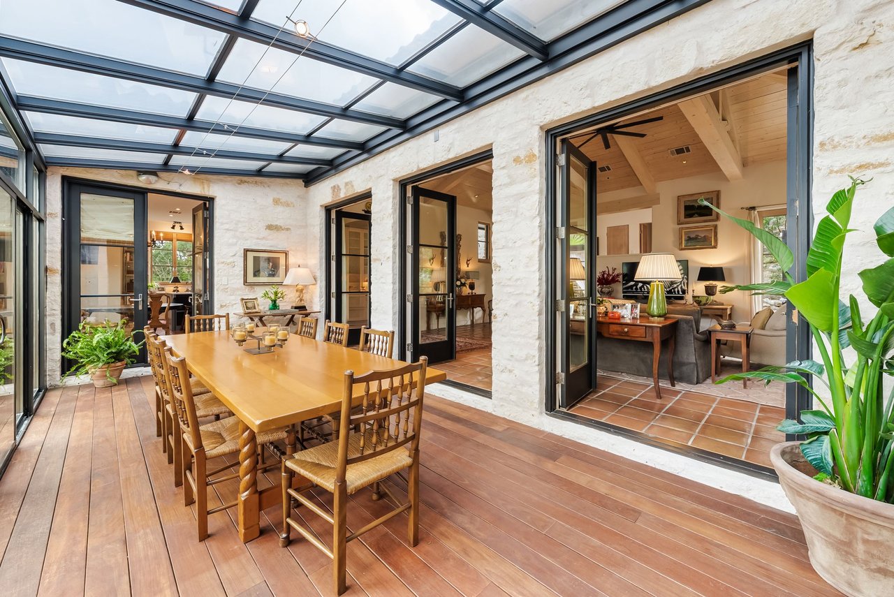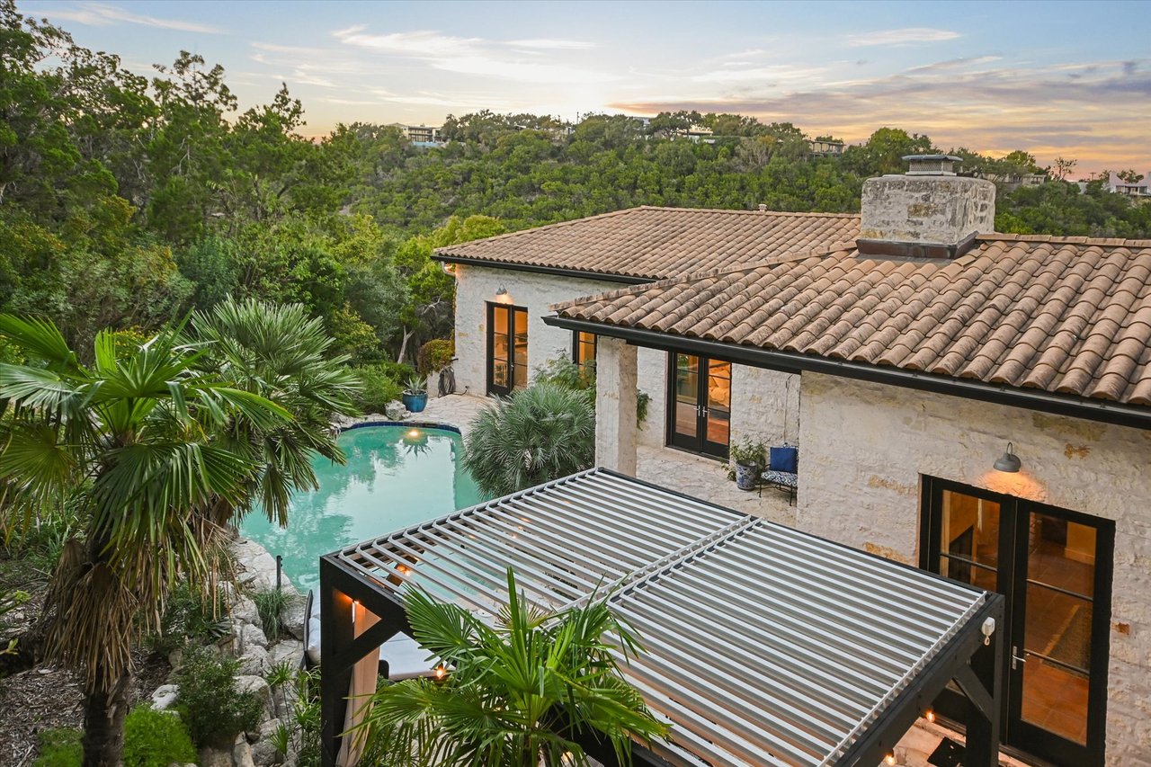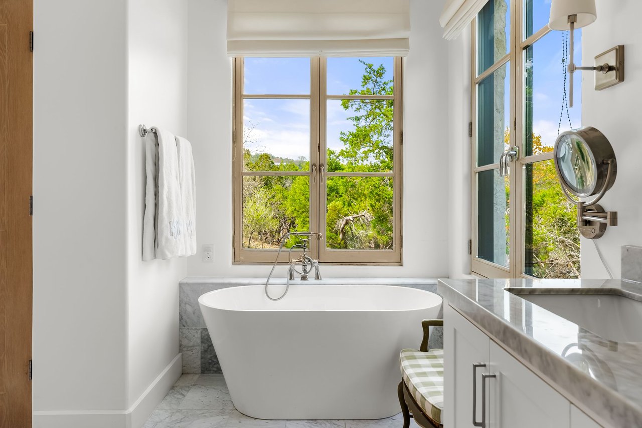 Tucked within scenic West Lake Hills, this French country-inspired residence offers a stunning balance of old-world charm and modern livability. The home rests on nearly two acres of lush, native landscape, creating a peaceful sense of seclusion just minutes from the heart of Austin. At Windsong Trail, timeless architecture and thoughtful enhancements come together in a setting that feels both private and inviting.