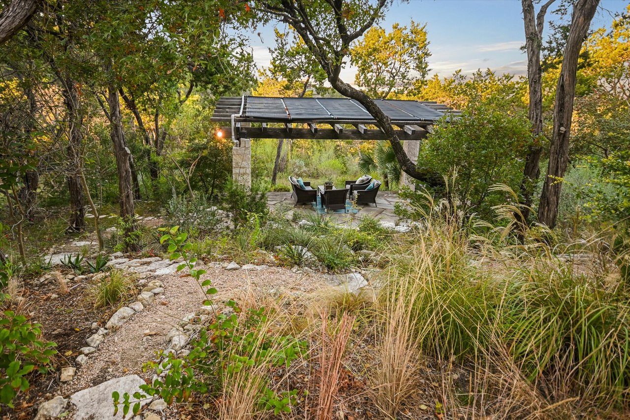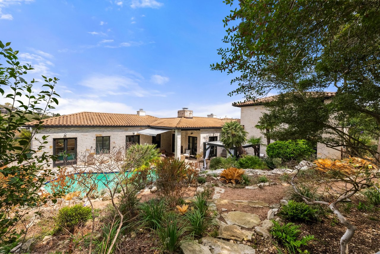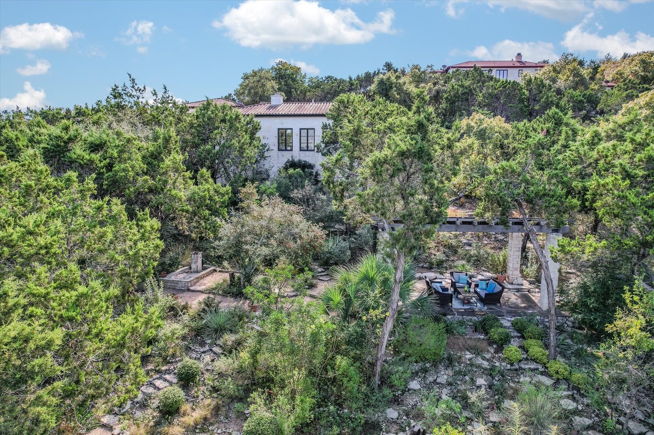 A detached guest apartment with a private entrance adds versatility for visitors or extended stays. Outdoors, the property is a secluded oasis with meandering pathways surrounded by the curated natural landscape with various seating areas designed that showcase the views. A pergola and outdoor kitchen are ideal for dining by the resort-style pool. This exceptional retreat in Eanes ISD offers privacy, beauty, and effortless access to the city.