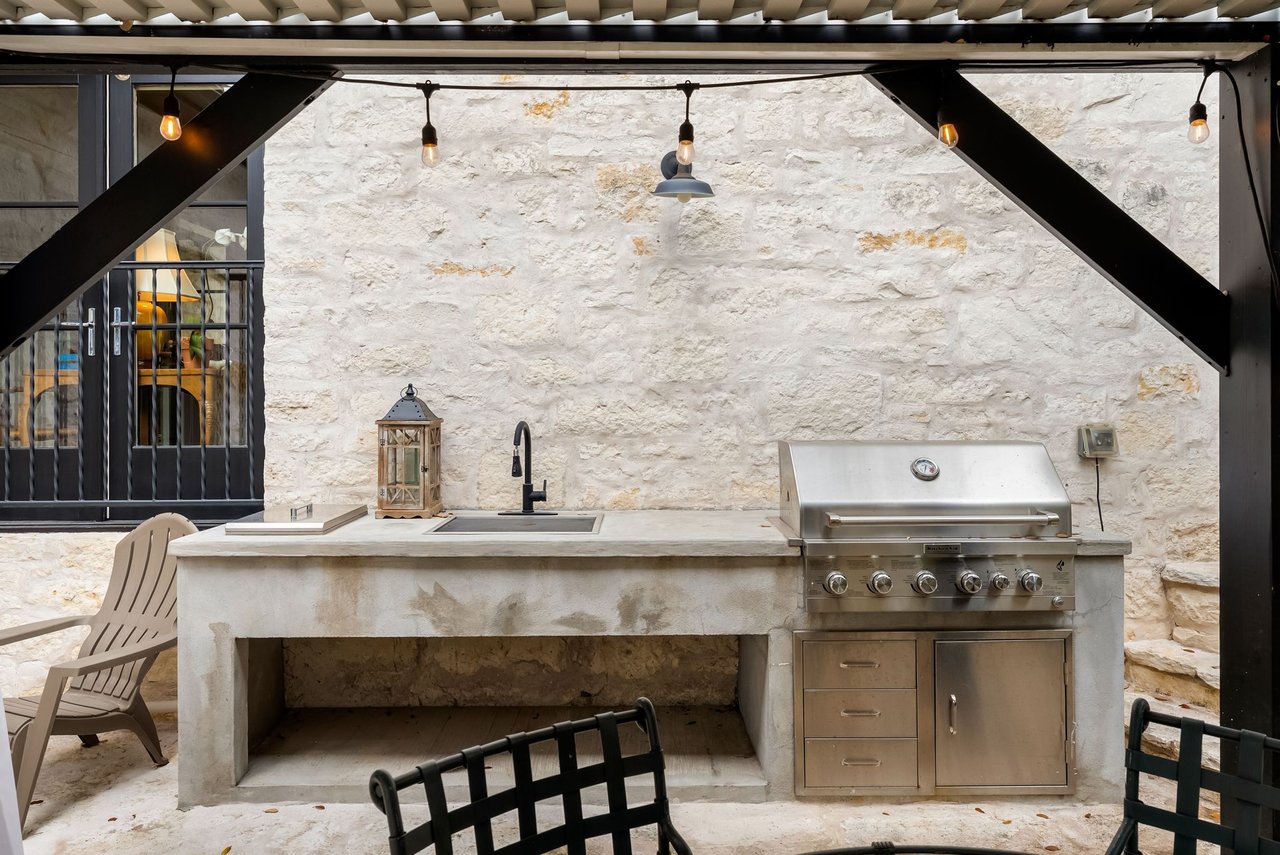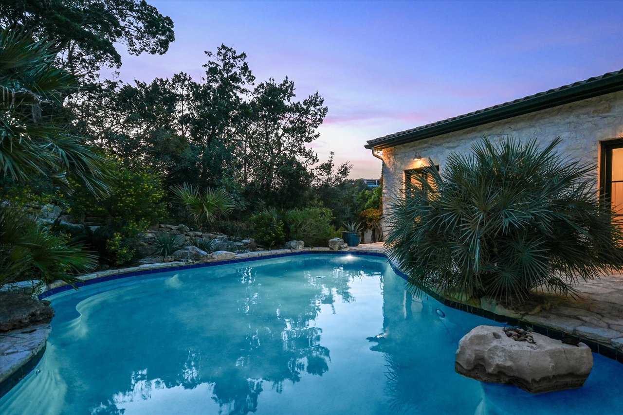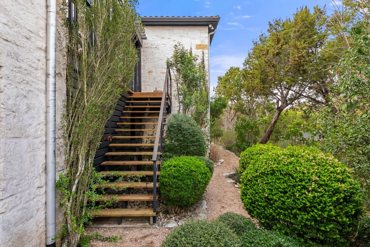 A detached guest apartment with a private entrance adds versatility for visitors or extended stays. Outdoors, the property is a secluded oasis with meandering pathways surrounded by the curated natural landscape with various seating areas designed that showcase the views. A pergola and outdoor kitchen are ideal for dining by the resort-style pool. This exceptional retreat in Eanes ISD offers privacy, beauty, and effortless access to the city.