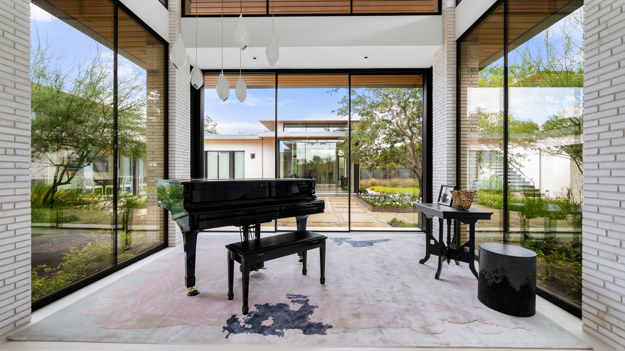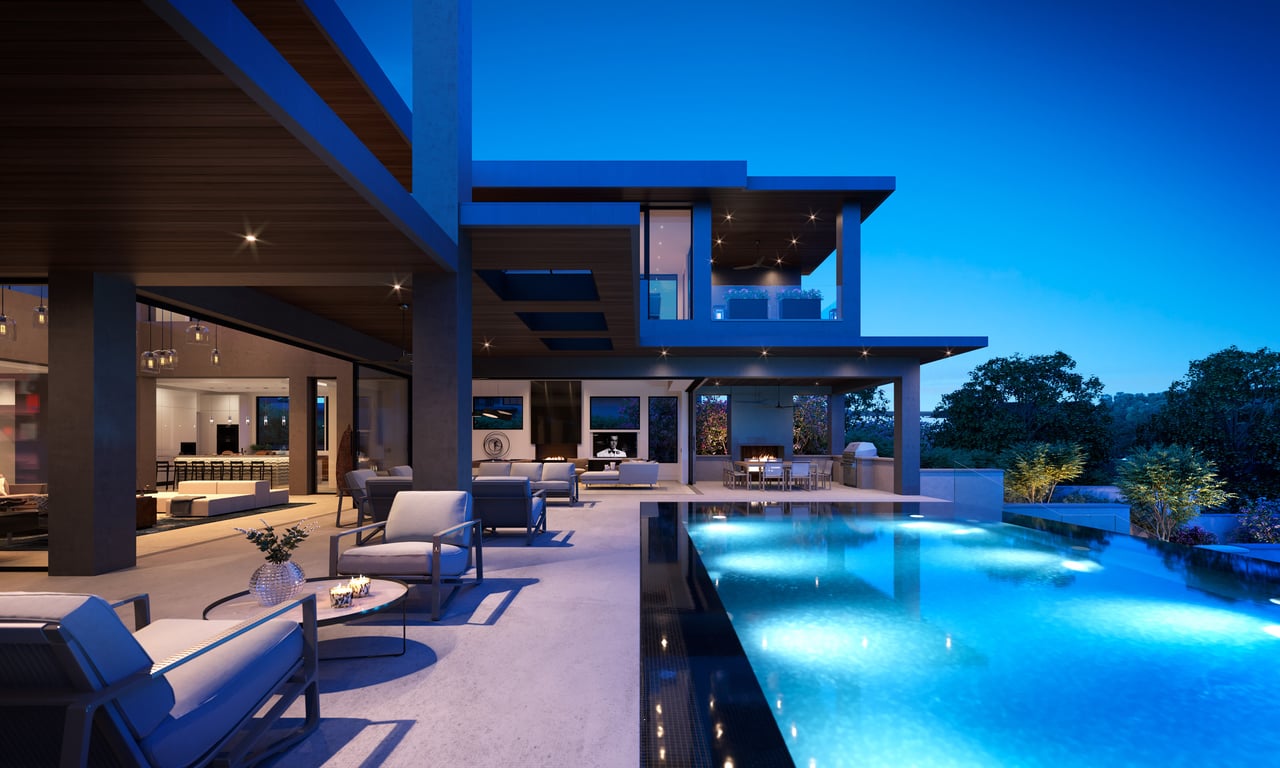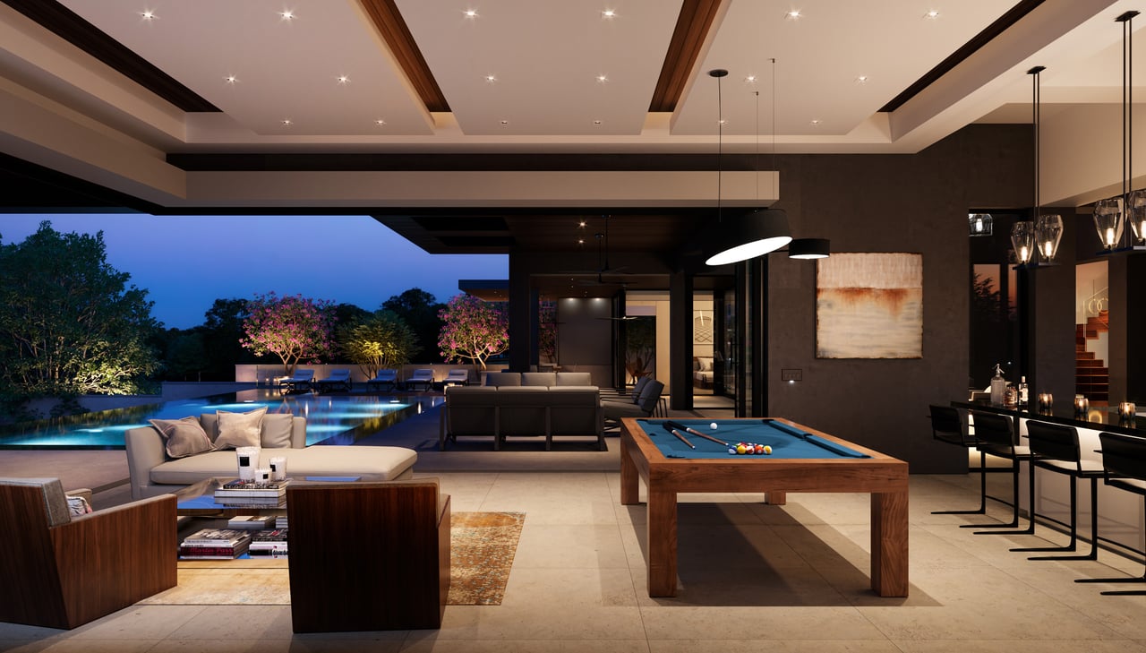 Designed to elevate the experience for guests and extended stays, the concierge home enjoys panoramic Hill Country views and a sense of complete independence. This residence features four bedrooms and three-and-a-half bathrooms, a two-car garage, and beautifully appointed interiors with high-end appliances throughout. A private courtyard with a fireplace and outdoor grilling area creates an ideal setting for entertaining, ensuring guests enjoy the same level of comfort and luxury as the main residence while maintaining their own space within the compound.