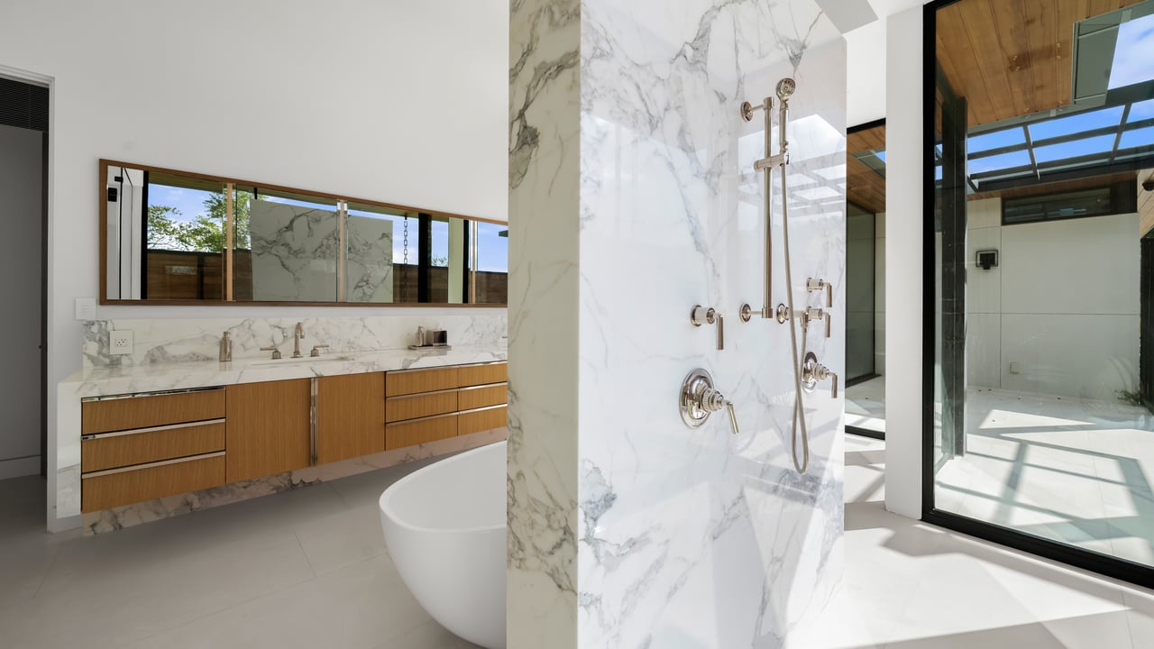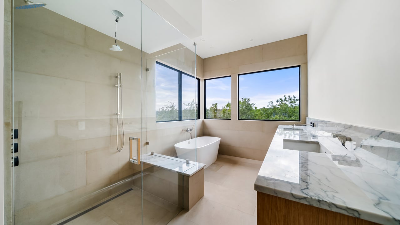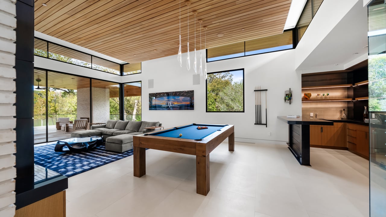 Completing the estate is a 2.38-acre waterfront lot with $250,000 already invested in architectural plans for a striking modern residence spanning approximately 8,554 square feet. The planned home includes five bedrooms, six full and two half bathrooms, and an already approved private boat dock. Thoughtfully designed to complement the existing structures while remaining architecturally distinct, the future residence is positioned to work in harmony with the land, maximizing privacy and preserving extraordinary lake and nature preserve views. Together, these three components form one of Lake Austin’s most compelling and versatile compound estates.