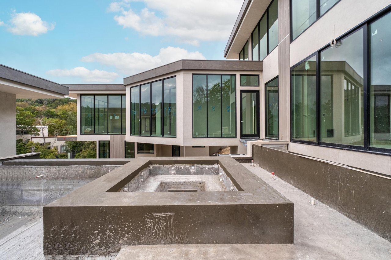 Situated in a premier West Lake Hills location, this newly constructed estate is an architectural masterpiece. The ~1-acre lot is wrapped in the privacy of the natural Hill Country terrain, with stunning views amplified through floor-to-ceiling windows throughout the home. Modern design abounds with stunning finishes, including Italian marble countertops and backsplash that carries over to the fireplace in the open living room. Timeless elements like Venetian plaster walls pair with modern touches to elevate every space.