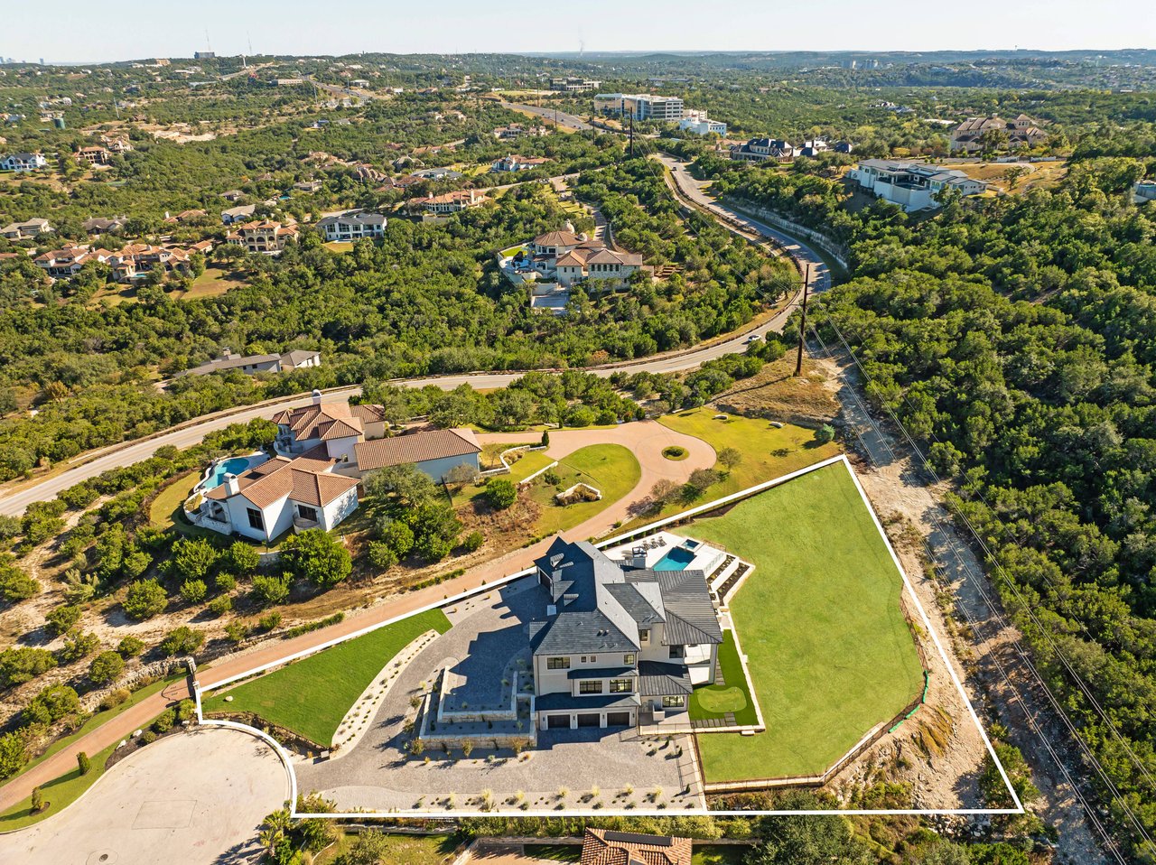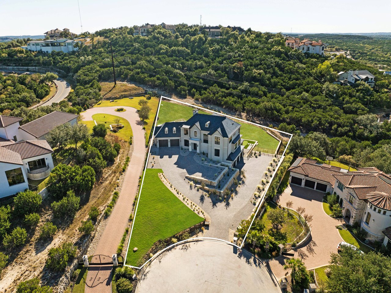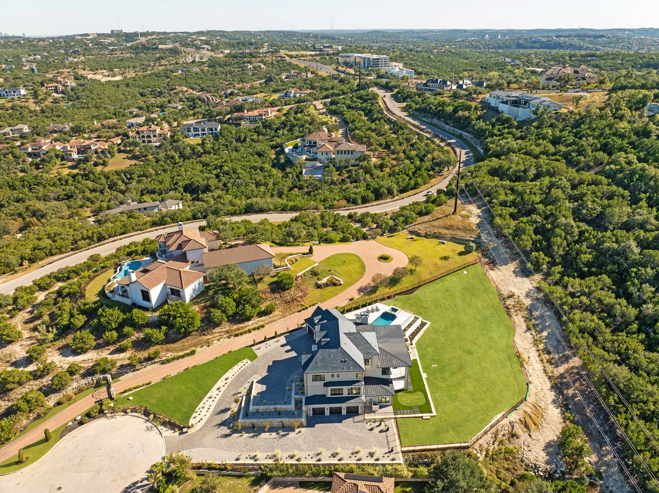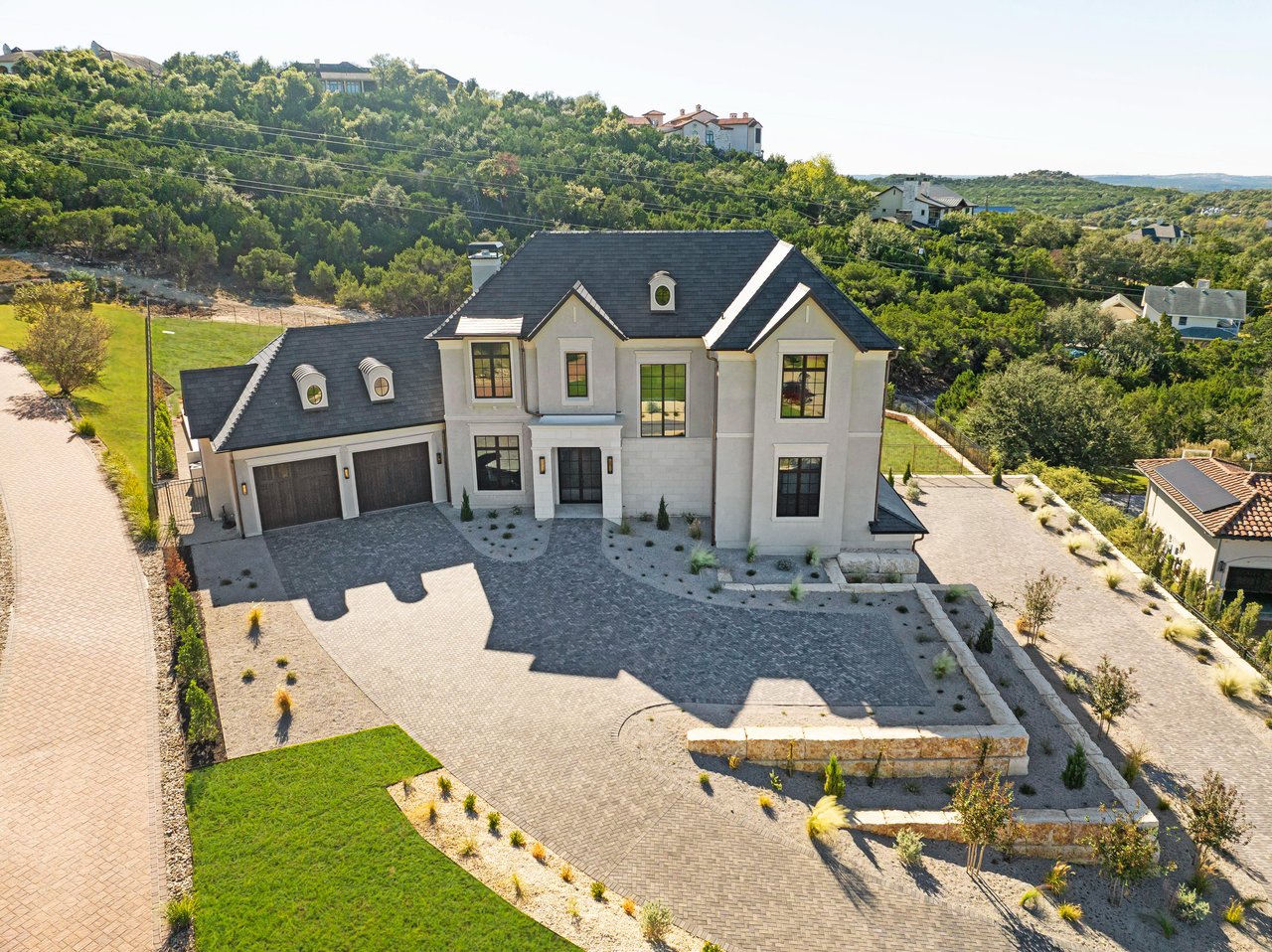 Set on over an acre at the end of a quiet cul-de-sac lined with grand estates, 9117 Brookhurst Cove offers sweeping Hill Country views from its elevated position. Inside, the newly constructed home welcomes you with stunning herringbone wood floors that set the tone for the immaculate finishes found throughout. Walls of windows frame the surrounding landscape, creating a seamless connection between the refined interiors and the natural beauty beyond.