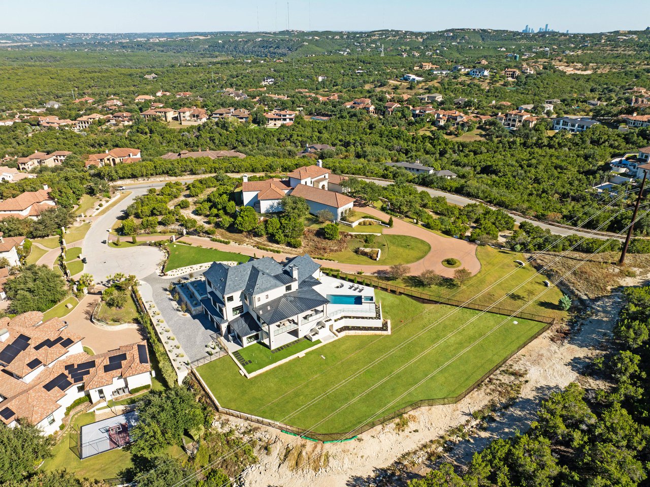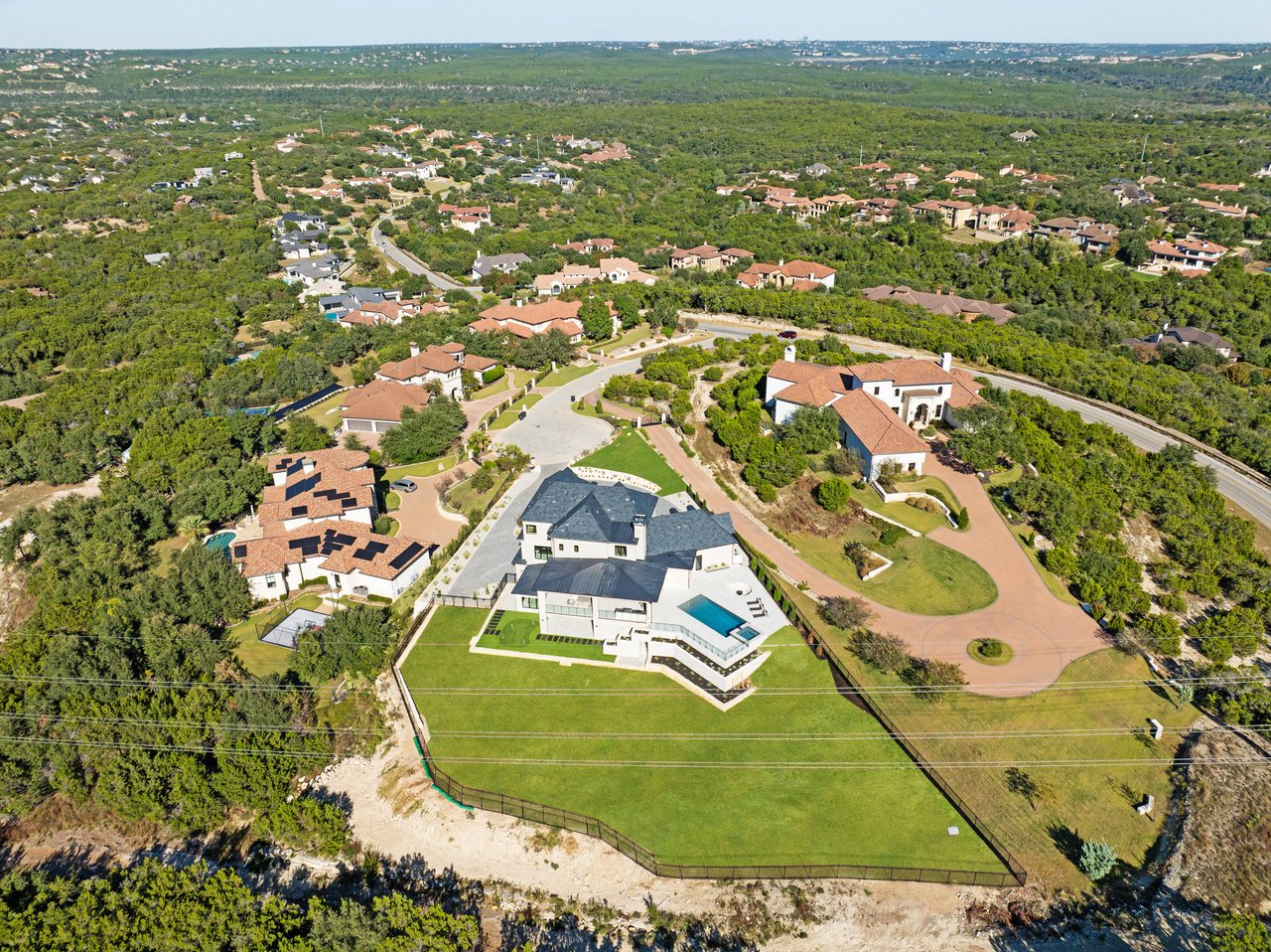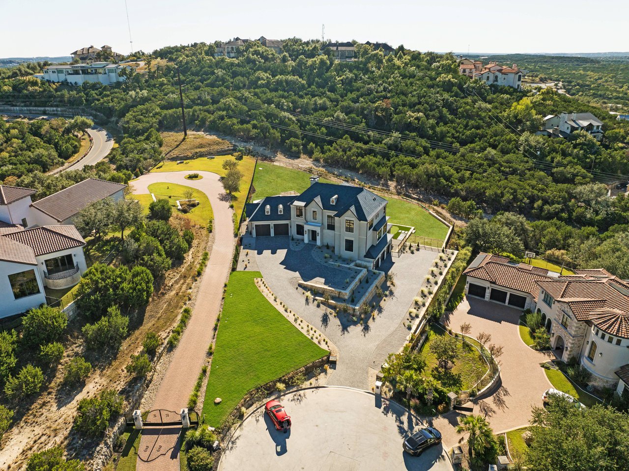 Set on over an acre at the end of a quiet cul-de-sac lined with grand estates, 9117 Brookhurst Cove offers sweeping Hill Country views from its elevated position. Inside, the newly constructed home welcomes you with stunning herringbone wood floors that set the tone for the immaculate finishes found throughout. Walls of windows frame the surrounding landscape, creating a seamless connection between the refined interiors and the natural beauty beyond.