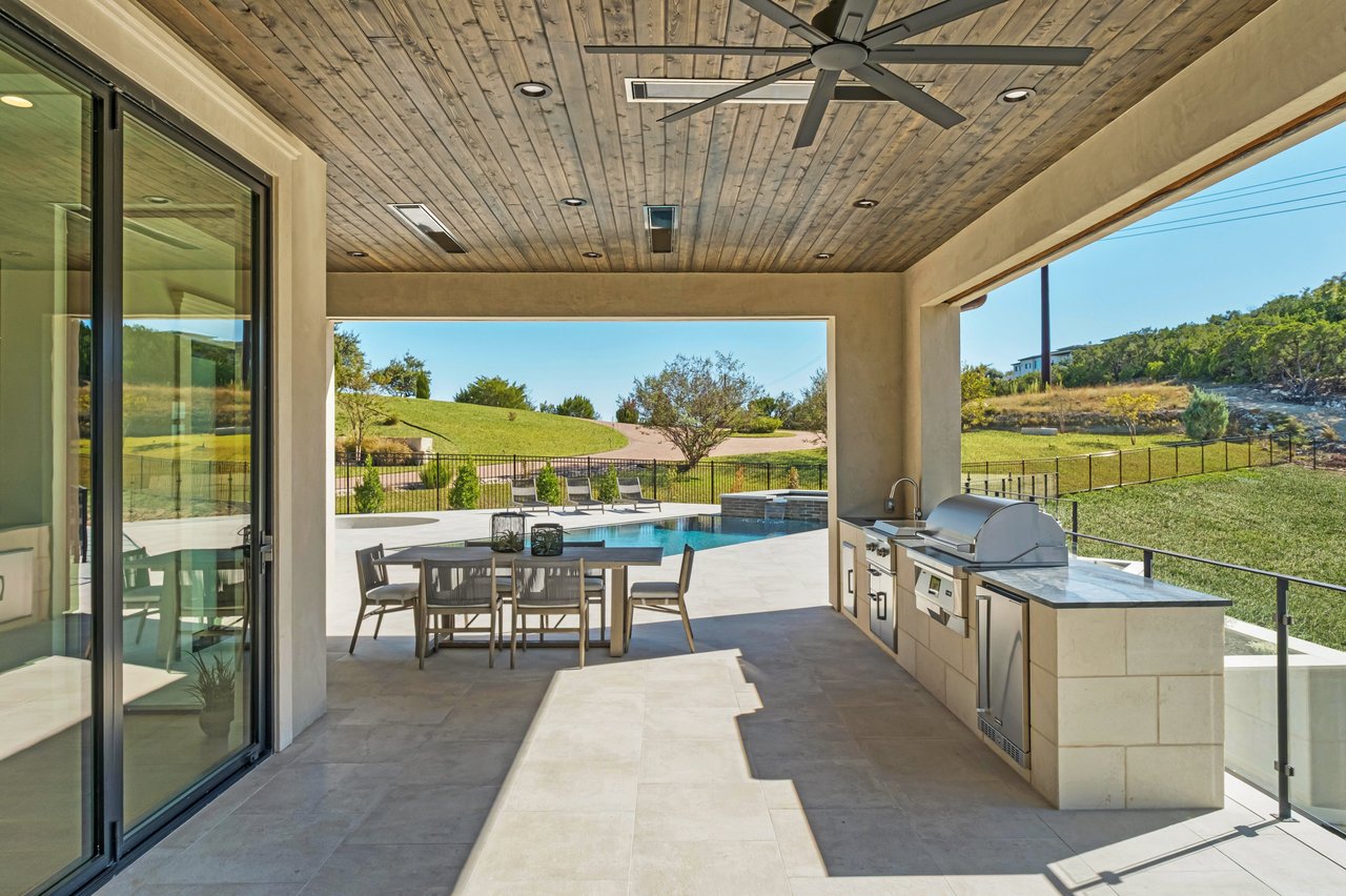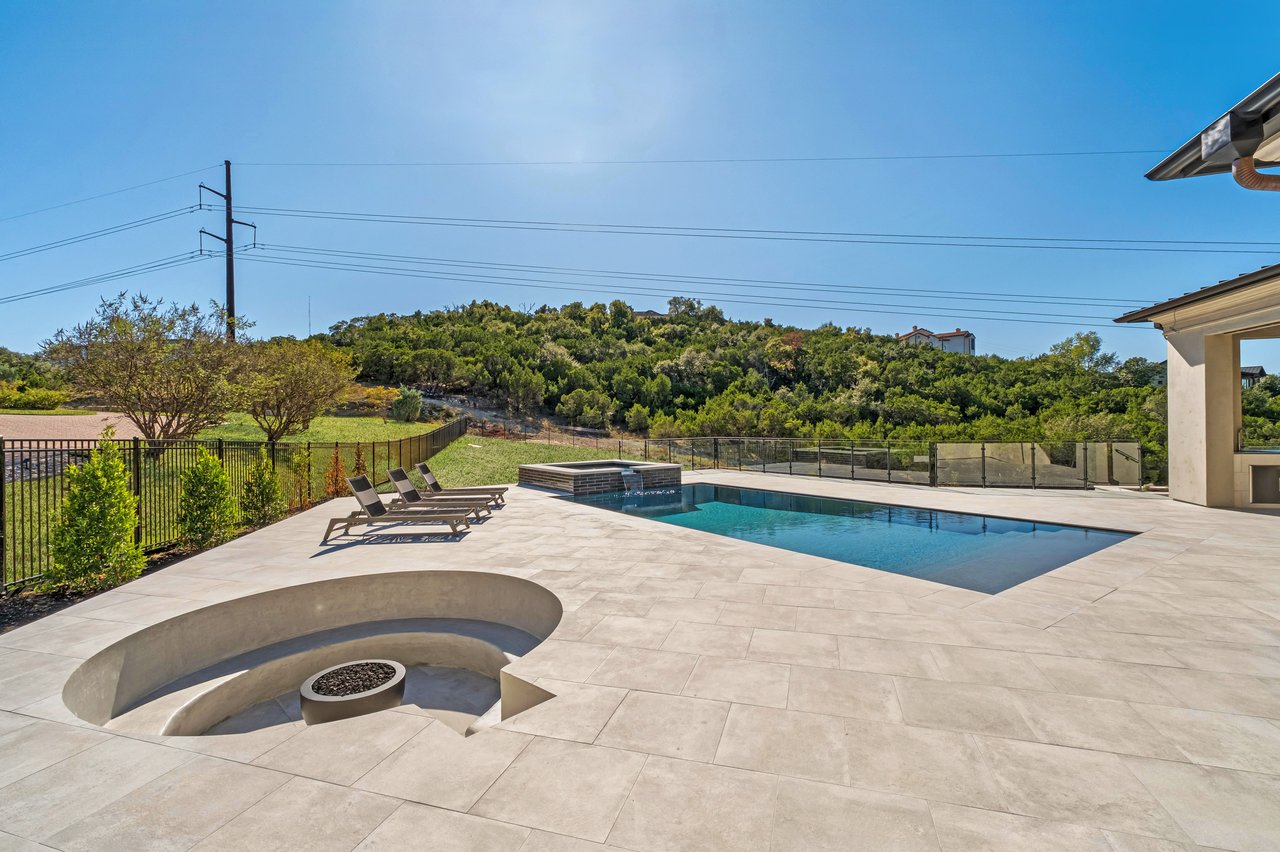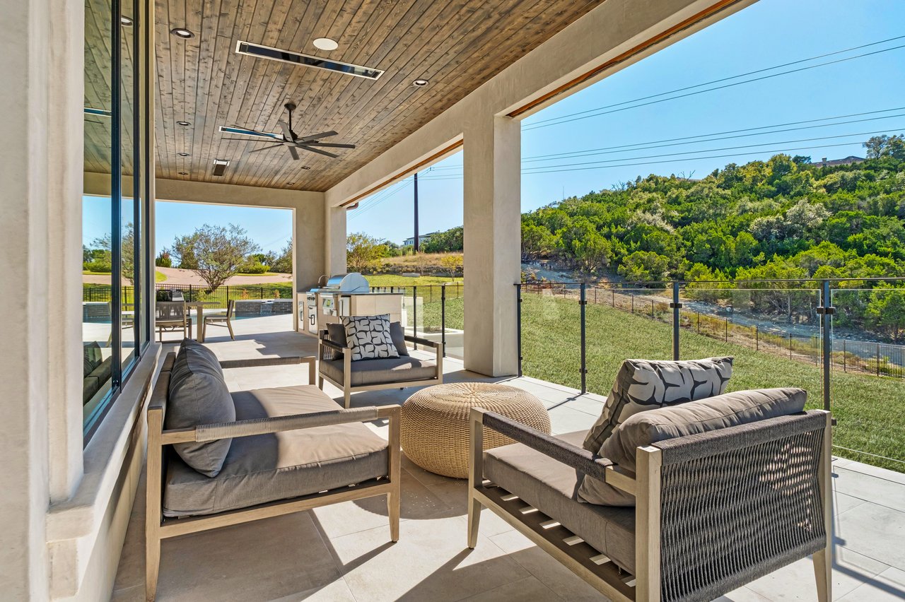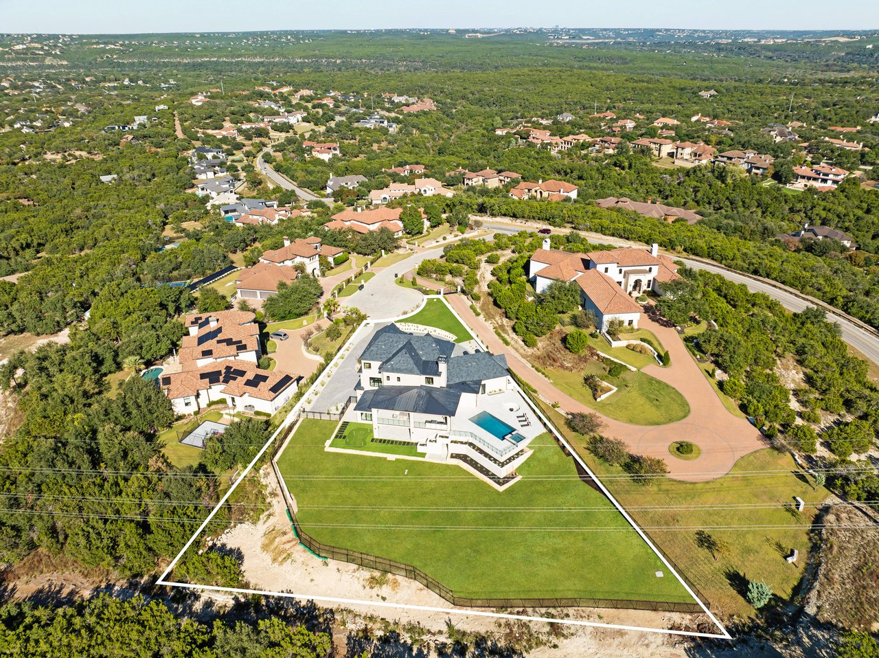 Set on over an acre at the end of a quiet cul-de-sac lined with grand estates, 9117 Brookhurst Cove offers sweeping Hill Country views from its elevated position. Inside, the newly constructed home welcomes you with stunning herringbone wood floors that set the tone for the immaculate finishes found throughout. Walls of windows frame the surrounding landscape, creating a seamless connection between the refined interiors and the natural beauty beyond.