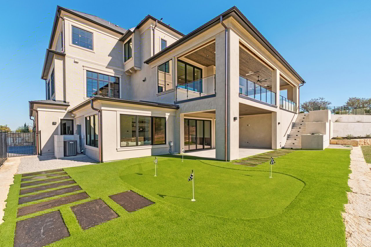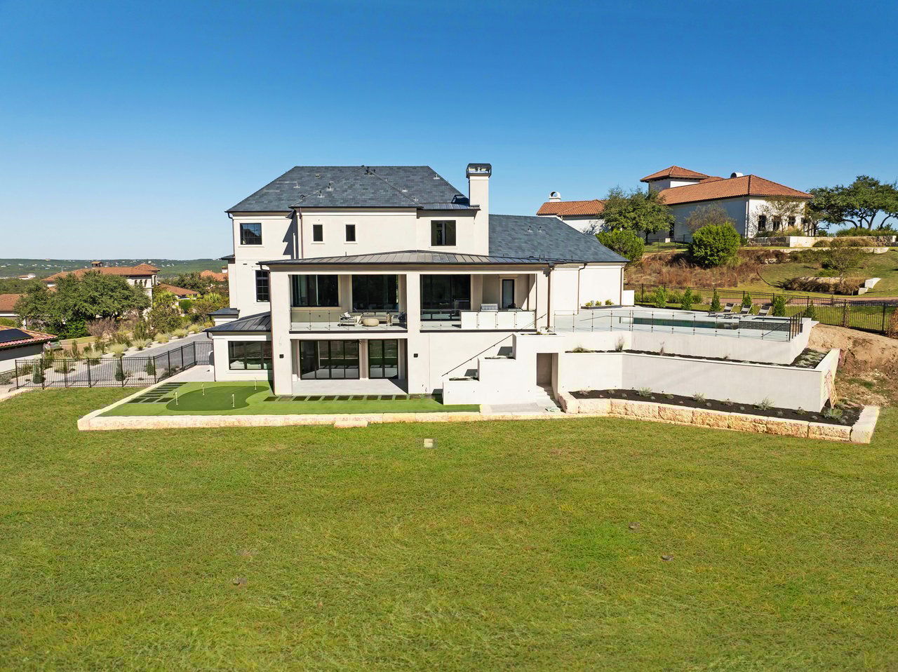 Designed for both relaxation and entertaining, the residence features resort-style amenities including a theater, yoga studio, pool and spa, putting green, firepit, and an outdoor kitchen ideal for hosting year-round. The attached garages provide space for five cars, accommodating both everyday needs and enthusiast collections. Located in the prestigious Seven Oaks neighborhood, this exceptional property offers luxury living in one of West Austin’s most sought-after settings.