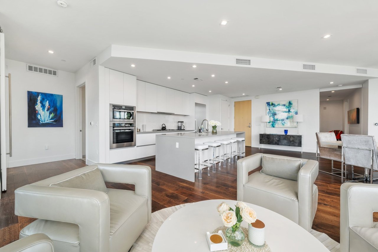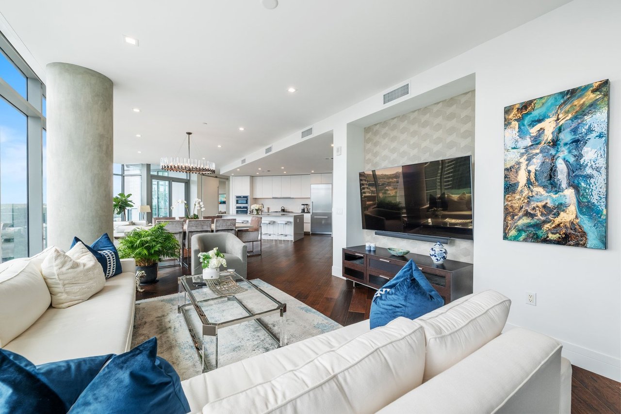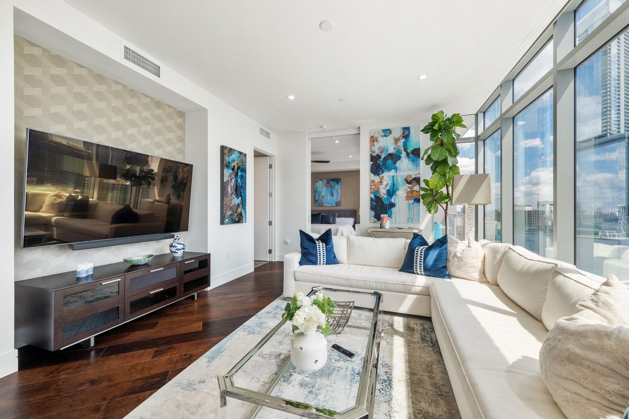 Experience premier downtown living in this expansive 3-bedroom, 3-bathroom residence at Fifth & West. Floor-to-ceiling windows frame sweeping city views, while an open-concept layout creates a seamless flow for both everyday living and entertaining. Hardwood floors, recessed lighting, and refined modern finishes are complemented by clean architectural lines and thoughtful design in every room.
