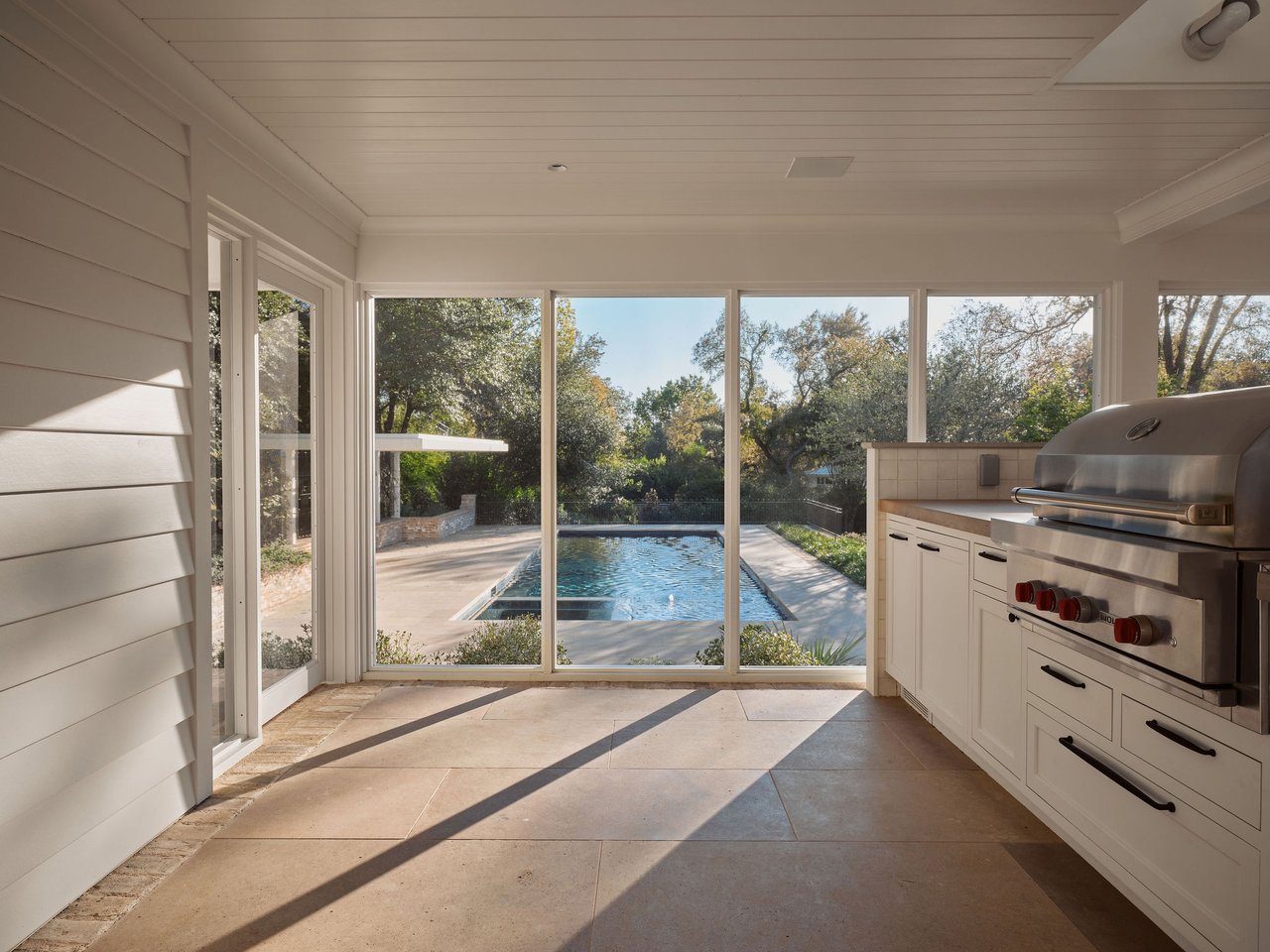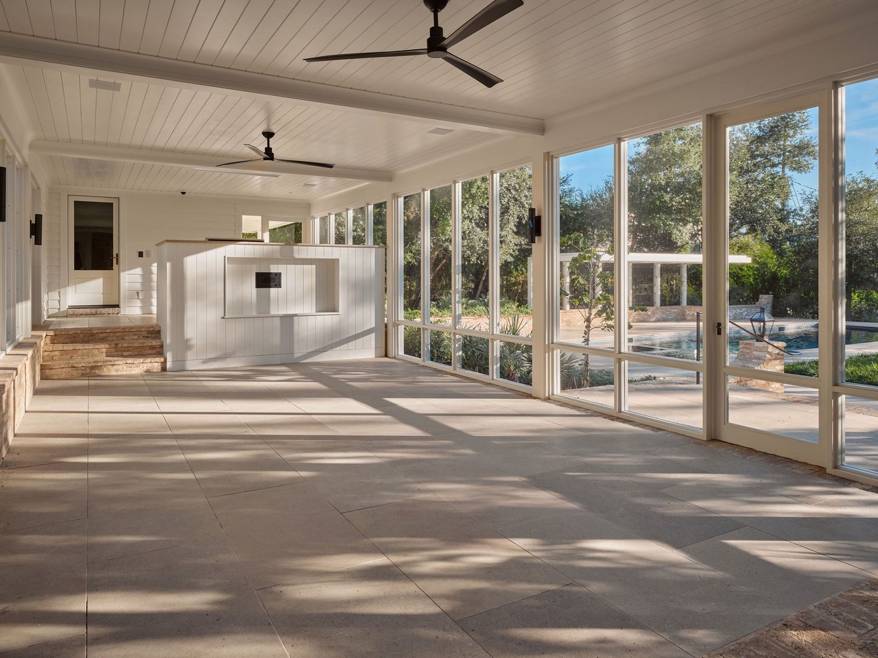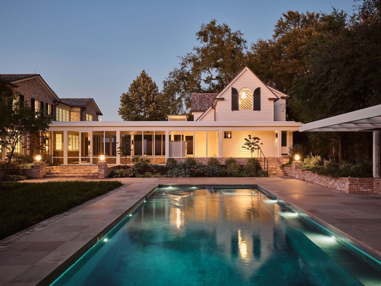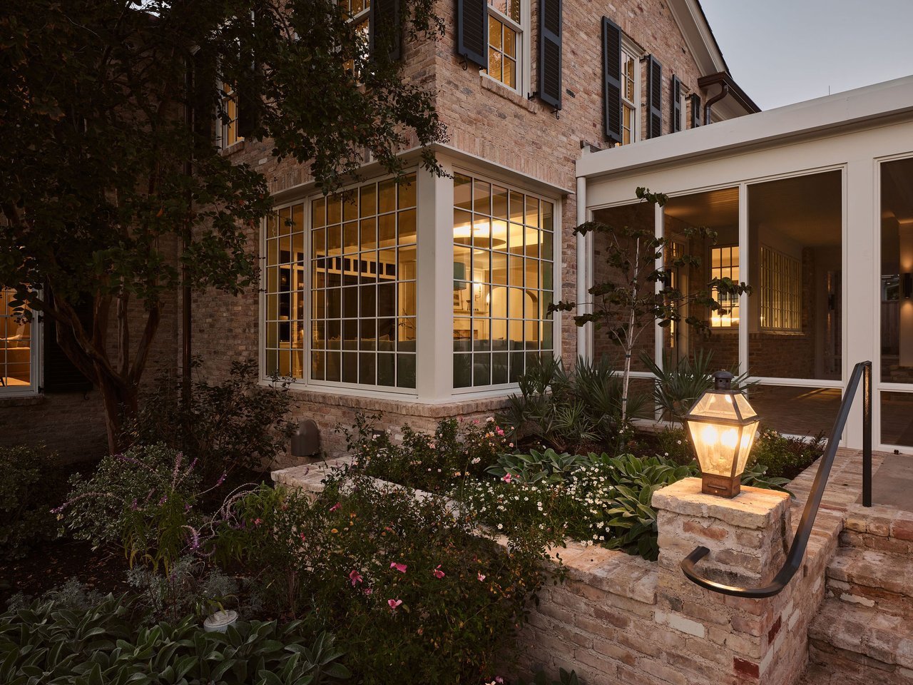 Designed by award-winning architecture firm Cuppett Kilpatrick – known for its appreciation for classical and heritage elements – the home’s design reflects the gracious nature of the surrounding community while offering everything a modern homeowner could ask for. Presiding over the expertly landscaped lot, the primary residence is constructed of Georgia-style masonry, creating a stately, yet welcoming facade. The sprawling grounds feature a lush landscape worthy of a country estate, including a cutting garden, fairy garden and plenty of lawn space on which to entertain and play. A screened breezeway offers protected outdoor living space overlooking the shimmering pool.
