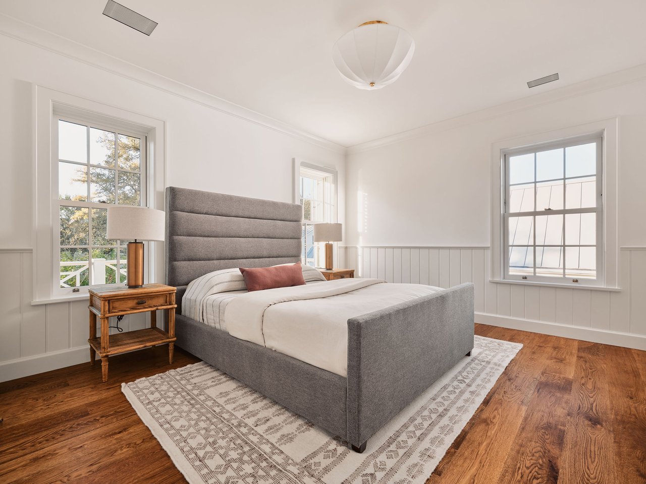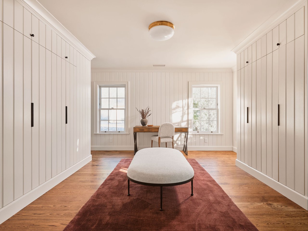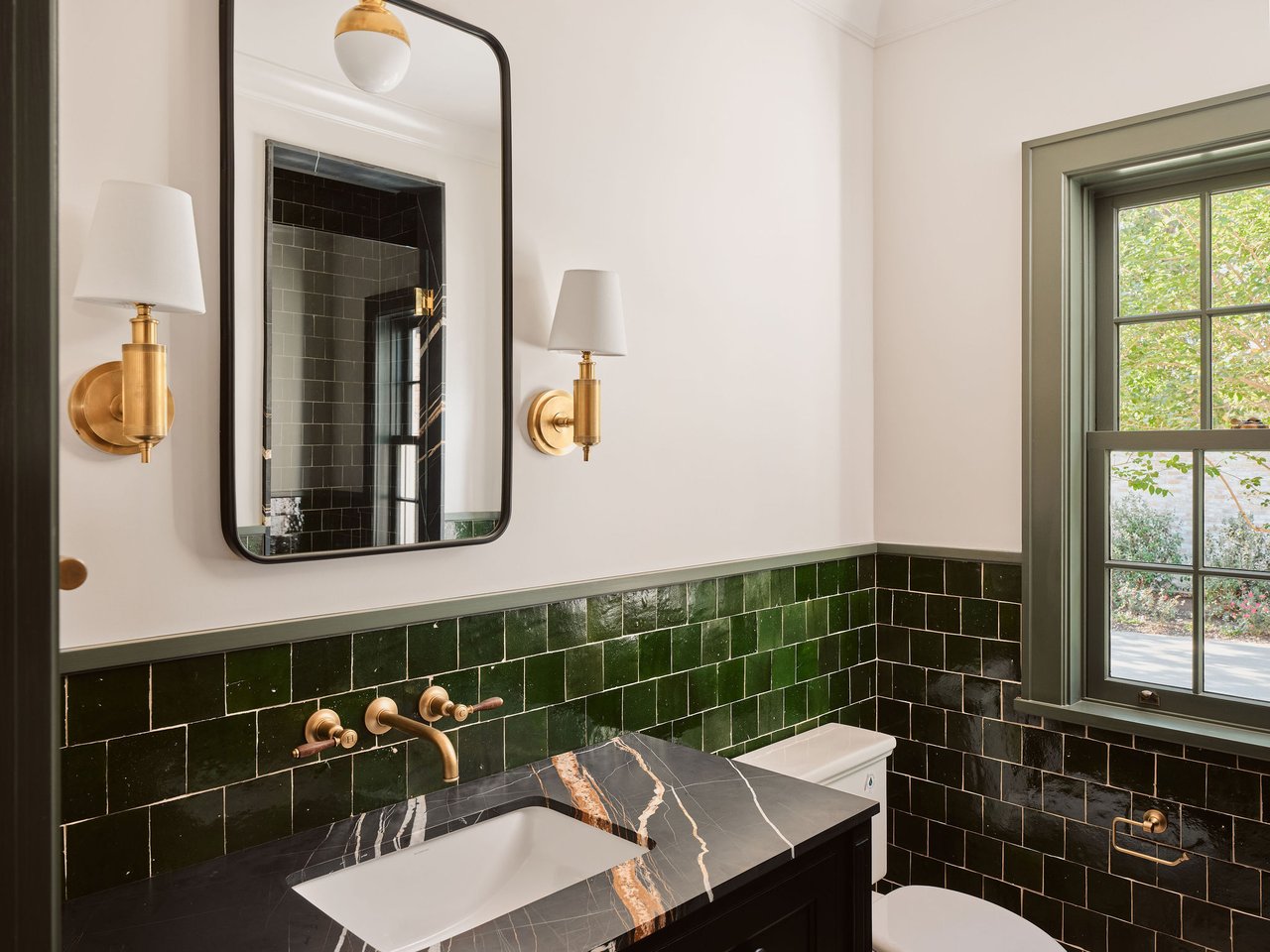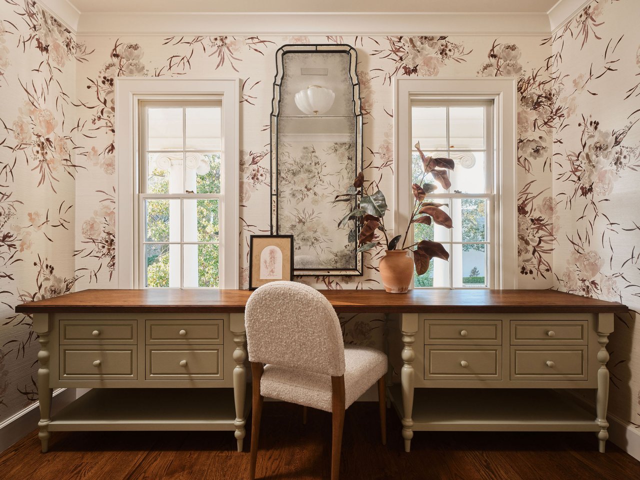 Designed by award-winning architecture firm Cuppett Kilpatrick – known for its appreciation for classical and heritage elements – the home’s design reflects the gracious nature of the surrounding community while offering everything a modern homeowner could ask for. Presiding over the expertly landscaped lot, the primary residence is constructed of Georgia-style masonry, creating a stately, yet welcoming facade. The sprawling grounds feature a lush landscape worthy of a country estate, including a cutting garden, fairy garden and plenty of lawn space on which to entertain and play. A screened breezeway offers protected outdoor living space overlooking the shimmering pool.