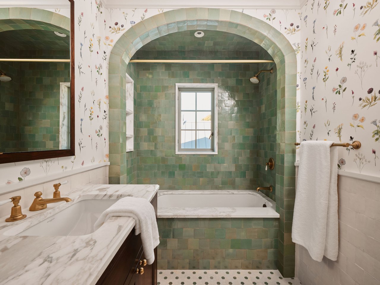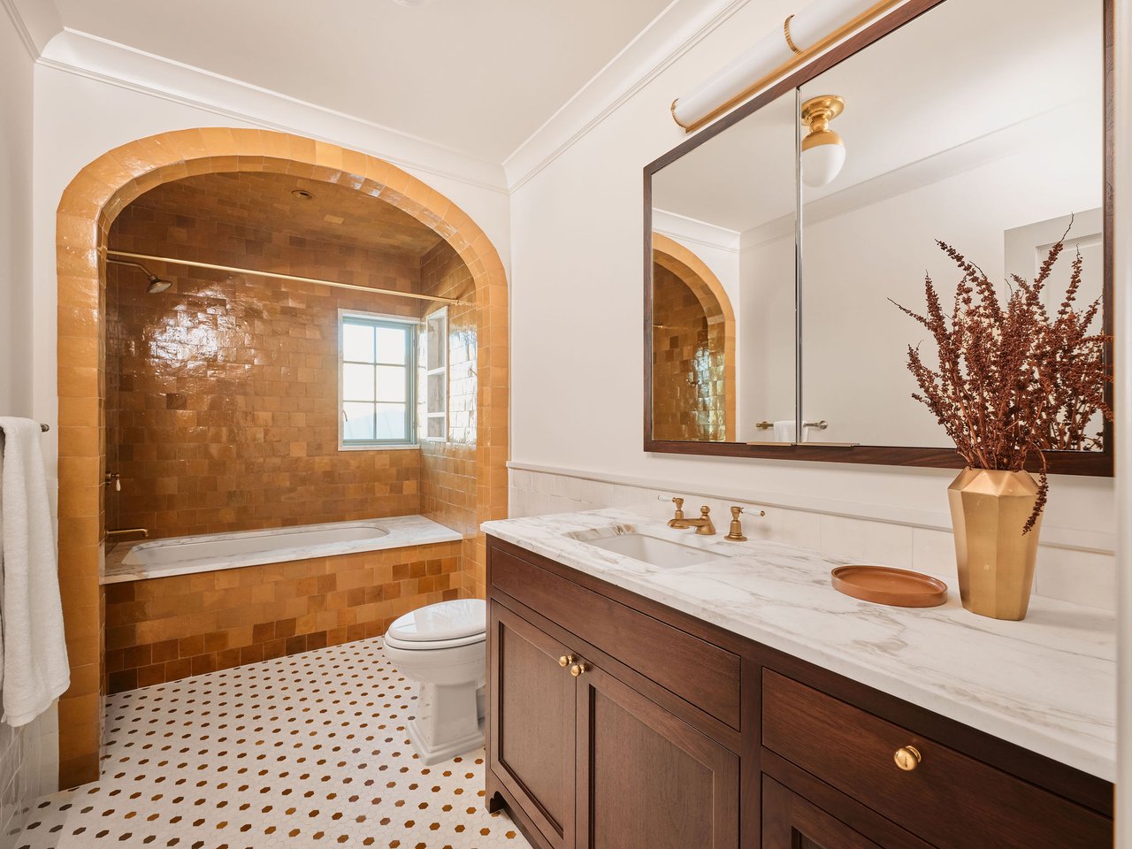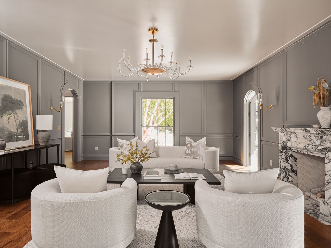 The interior is thoughtfully designed by the architects and expertly crafted by Koch Construction to reflect a respect for tradition, with exquisite millwork and luxurious details not often seen in today’s modern homes. Herringbone oak and brick floors, creamy marble on fireplace surrounds and counters, and intricate leaded-glass windows are viewed through arched doorways to lend every space a sense of grace and elegance. Flooded with light, rooms feel both timeless and fresh. The expansive living and dining rooms offer space for refined entertaining on a large scale, complemented by intimate places for quiet conversation. The floorplan offers features such as a sunlit solarium, paneled library, playroom and a screening room/bar. This is a home that will stand the test of time; its refined design and meticulous craftsmanship providing shelter and joy for generations to come.