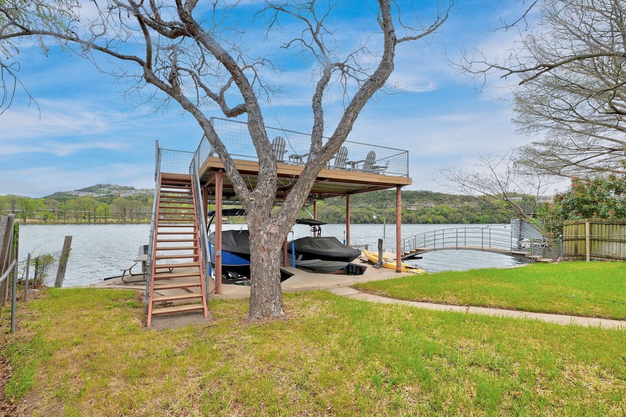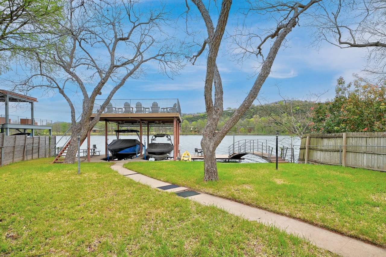 This waterfront bungalow on Lake Austin is nestled in a highly sought-after locale moments from the Pennybacker Bridge and Austin Country Club. Enjoy spectacular views across the lake of the new and beautifully maintained grounds of The Holdsworth Center. Take advantage of the property’s desirable two-slip boat dock, jet-ski lifts and a party deck for convenient water access and fun. An exceptional opportunity to own in an iconic Austin neighborhood, the property boasts a 2-bedroom, 3-bathroom home with 2 living rooms, a formal dining room, and an attached 2-car garage with a serene backyard to host guests with sweeping water views. This property is less than 2 miles from retail and restaurants of Davenport Village and less than one mile to Austin Country Club. 24-Hour Advance Showing Notice.